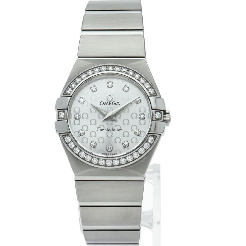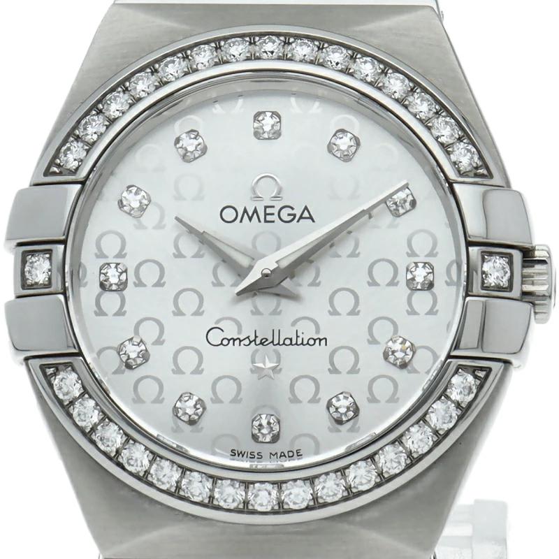 | オメガを代表するドレスウォッチ「コンステレーション」。シンプルかつ上品なデザインでスタイルを選ばずに使用できる人気モデル。サテン仕上げモデルのシルバーダイアルには、ダイヤモンドがセットされたアワーインデックスが配置され、背景にはオメガのロゴマークを整然と並べたパターンが描かれています。高性能クォーツムーブメント、キャリバー1376を搭載。 |