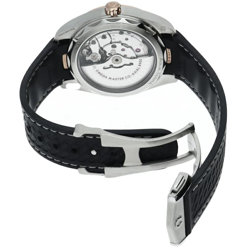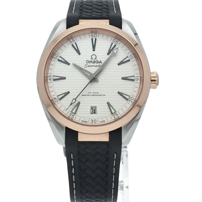 Pre-owned Omega Seamaster Aqua Terra 150M Co-Axial Master Chronometer 41mm (220.22.41.21.02.001) in 18K White Gold, Stainless Steel, and Rubber.