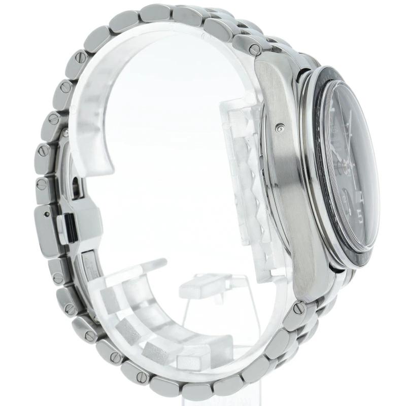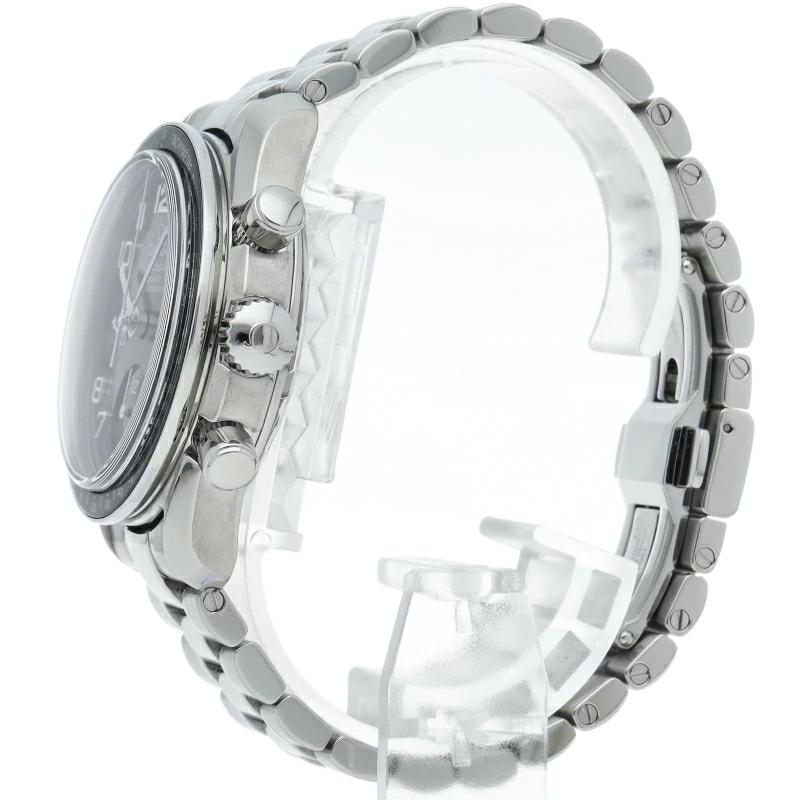 | 濃いグレーのダイアルとブラックセラミック製タキメーターベゼルがシックな印象。ブレスレットの質感が向上し、調整はネジ式に変更されました。100mの防水性能やCOSC認定クロノメーター規格のキャリバー3304を搭載するなど、各部が進化した新世代のスピードマスターです。 |