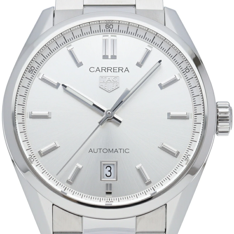 | あらゆる状況に対応する、タグ・ホイヤー カレラ。高級感あふれるシルバーサンレイサテン仕上げのダイヤルには、機能的でエレガントなロジウム加工のタグ・ホイヤー ロゴ、そしてスーパールミノバRが塗布された針とインデックスが映えます。 |