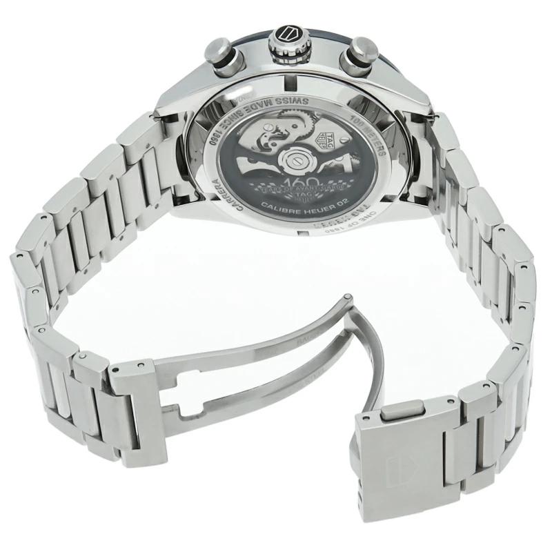 | 完璧なスタイルで完璧に時を刻む「タグ・ホイヤー カレラ キャリバーホイヤー02 スポーツクロノグラフ」。44mmサテン/ポリッシュ仕上げステンレススティール製ケースの中には、自社製ムーブメントキャリバーホイヤー02が収められています。 |