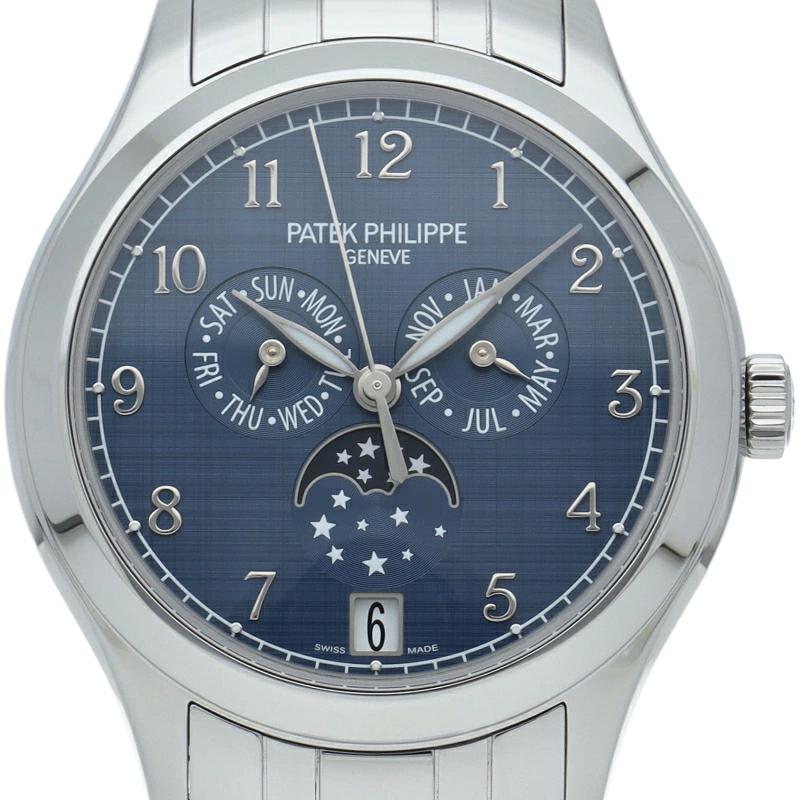 | パテックフィリップのベストセラーのひとつ年次カレンダー「4947/1A-001」。ケース・ブレスレット共にステンレススチール製を採用し直径サイズが38mmとなりリファレンス番号もレディースのモデルのリファレンス番号が採用されております。ムーブメントにはキャリバー324SQALUを搭載。 |