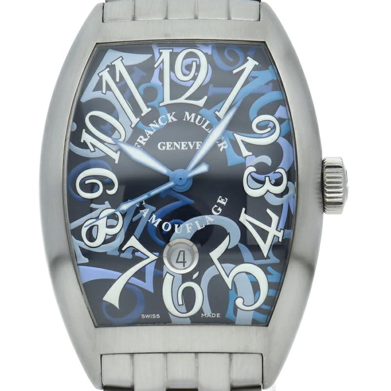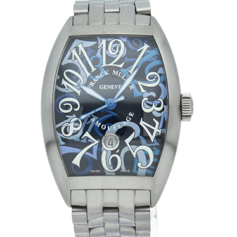 | フランク・ミュラーの人気シリーズ「カサブランカ」。日本限定200本。美しい曲線の樽型ケースに、フランクミュラー特有のビザン数字を幾重にも重ねカモフラージュ柄に仕上げたモダンなデザインが特徴的です。8880CDTBR CAMOUFLAGE AC |