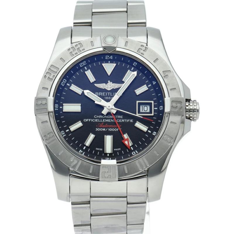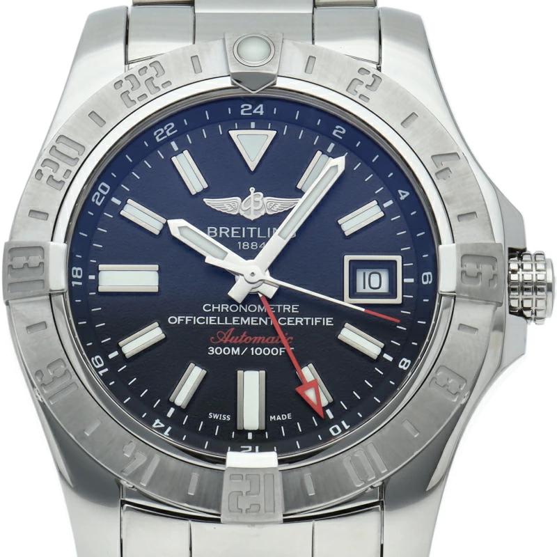 | 300mもの防水機能とGMT機能を備えた「アベンジャーII GMT」。24時間表示インデックスが刻まれたベゼルを操作することで第3タイムゾーンまでの時間が分かるようになっています。A32390/A3239011/BC35 |