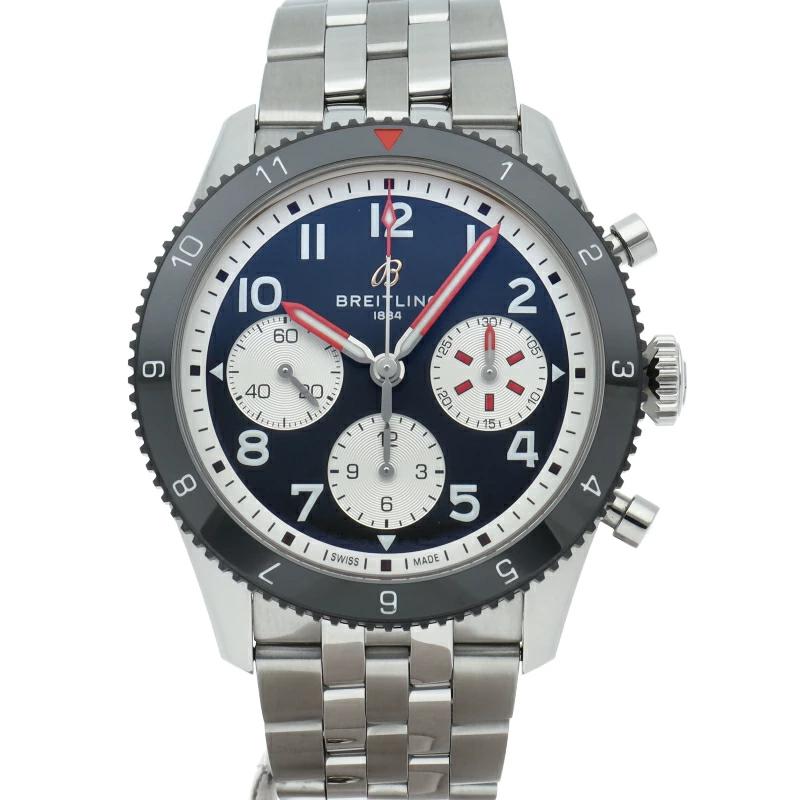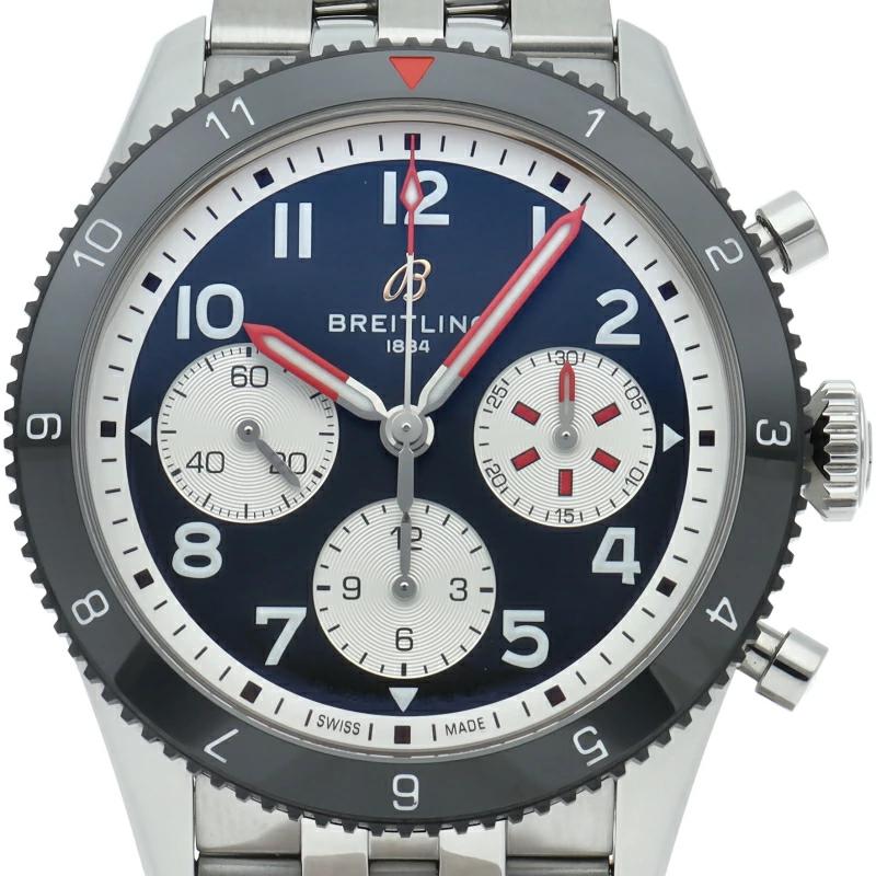 | 1950年代「時計ではなく計器である」という理念のもとに、パイロットウォッチの先駆けとなり開発された時計「アヴィ」。そんなブライトリングの最新シリーズ「アヴィ」は黎明期に名を馳せた航空機のたくましい精神にインスパイアされたコレクションであり、裏蓋にはイギリスの戦闘機「モスキート」の機体のシルエットが描かれています。Y23380/Y233801A1B1A1。 |