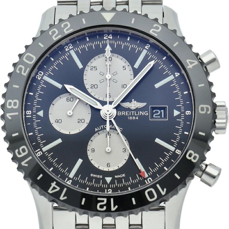 | ブライトリングの1960年代の名作「アビエーション」を新しいスタイリングで復刻したモデルです。長距離フライトに対応した24時間表示の第2タイムゾーン表示を備え、回転ベゼルはブライトリング初のファインセラミック製となっています。Y24310/Y2431012/BE10。 |