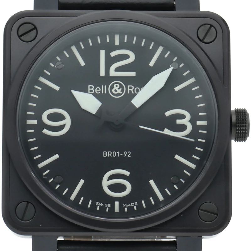 | 航空計器をイメージした独特なスクエアケースが特徴的な「BR01シリーズ」。シンプルなデザインかつ視認性も優れた1本。 |