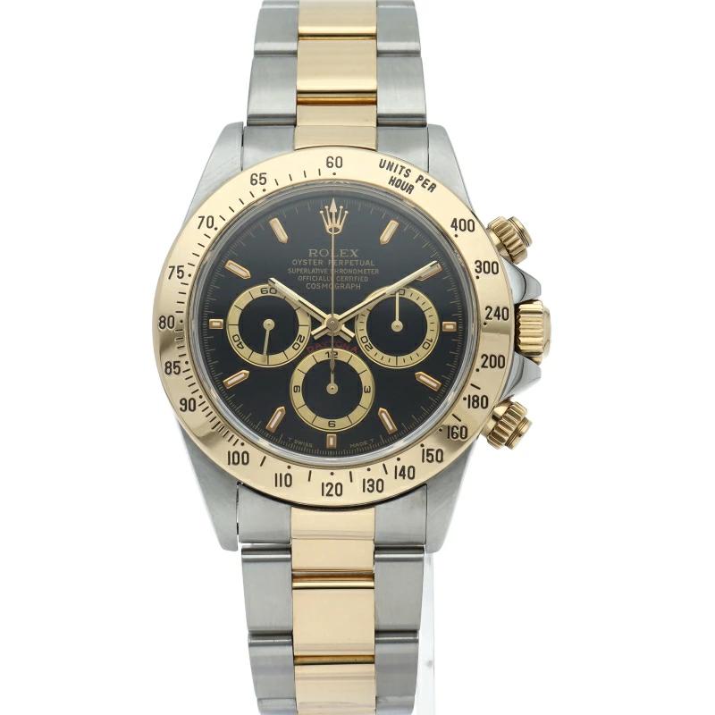 | ゼニス社の世界最高峰ムーブメント「エルプリメロ」を搭載したロレックスのスポーツモデルの最上級モデル「デイトナ」。こちらはイエローゴールドとのコンビ仕様で高級感も増した1本。 |