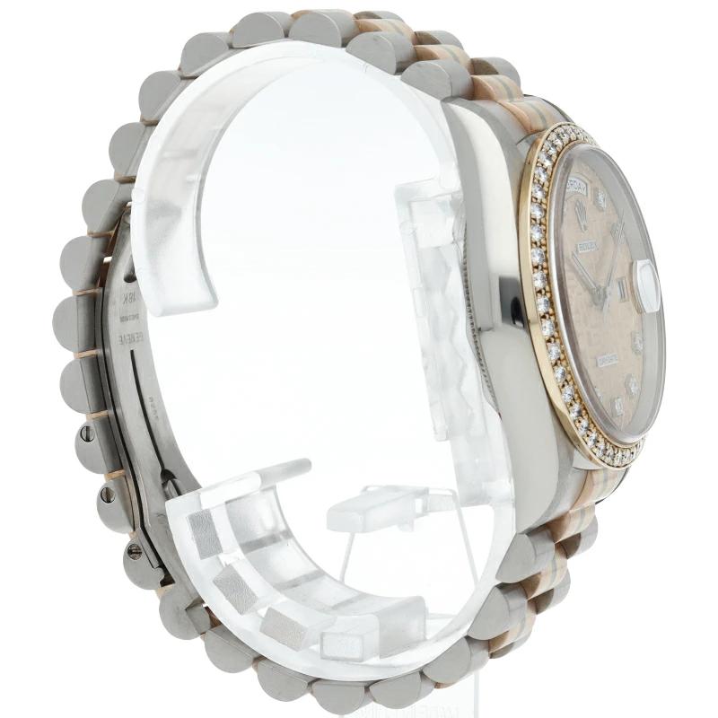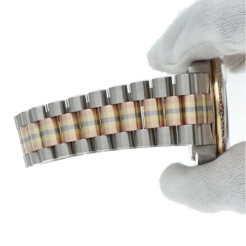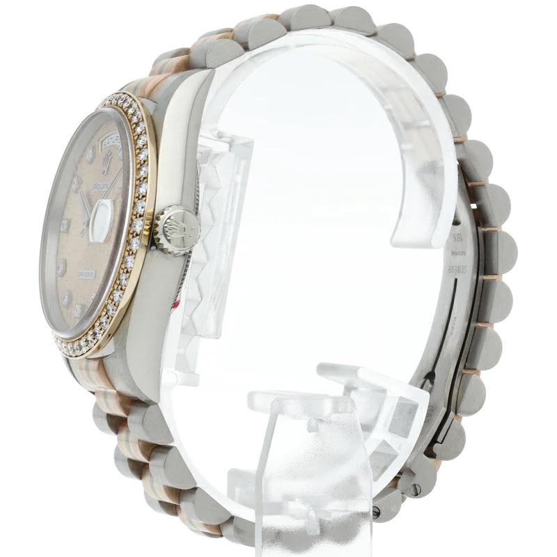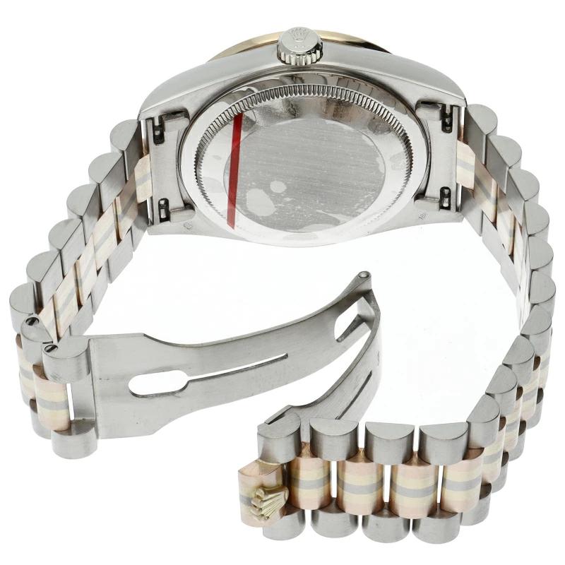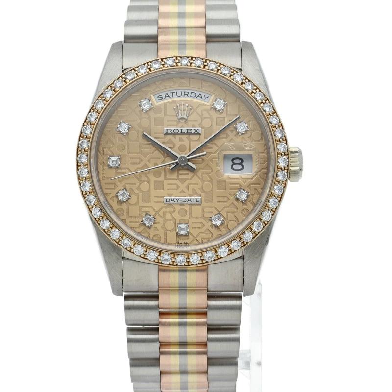 | ロレックスのドレスウォッチの最高峰「デイデイト」。更に、既に生産が終了となり玉数がかなり減少しているトリドールブレスタイプは色鮮やかで希少です。 |