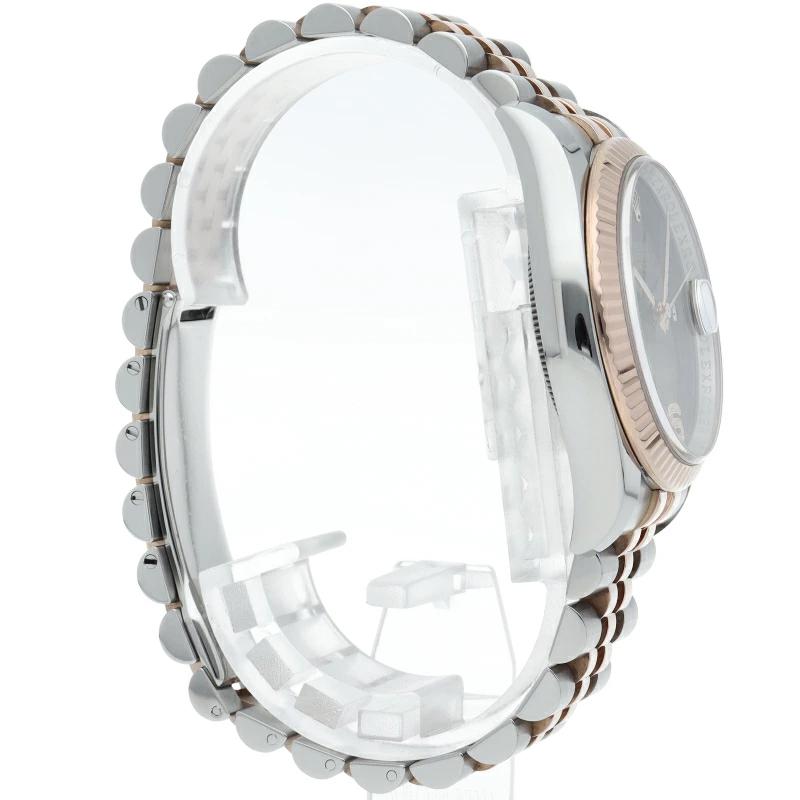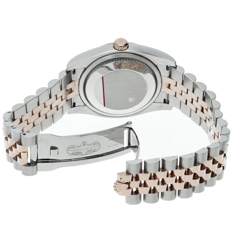 | ロレックスのドレスウォッチで幅広い年齢層に愛されている「デイトジャスト」。人気のローマンダイヤルに、柔らかい印象のピンクゴールドとステンレスのコンビの仕様です。6.9位置にダイヤが付いた珍しいモデルです。 |
