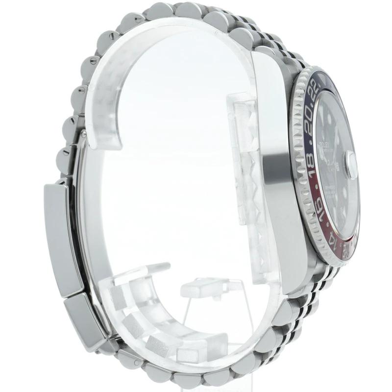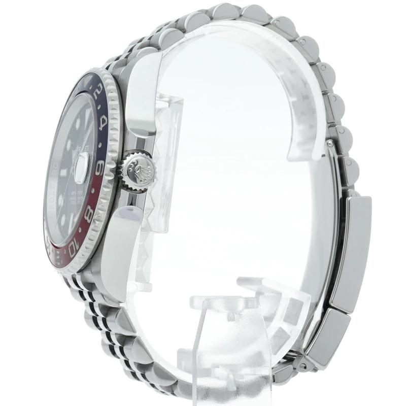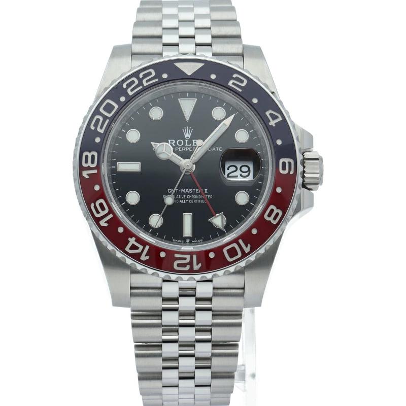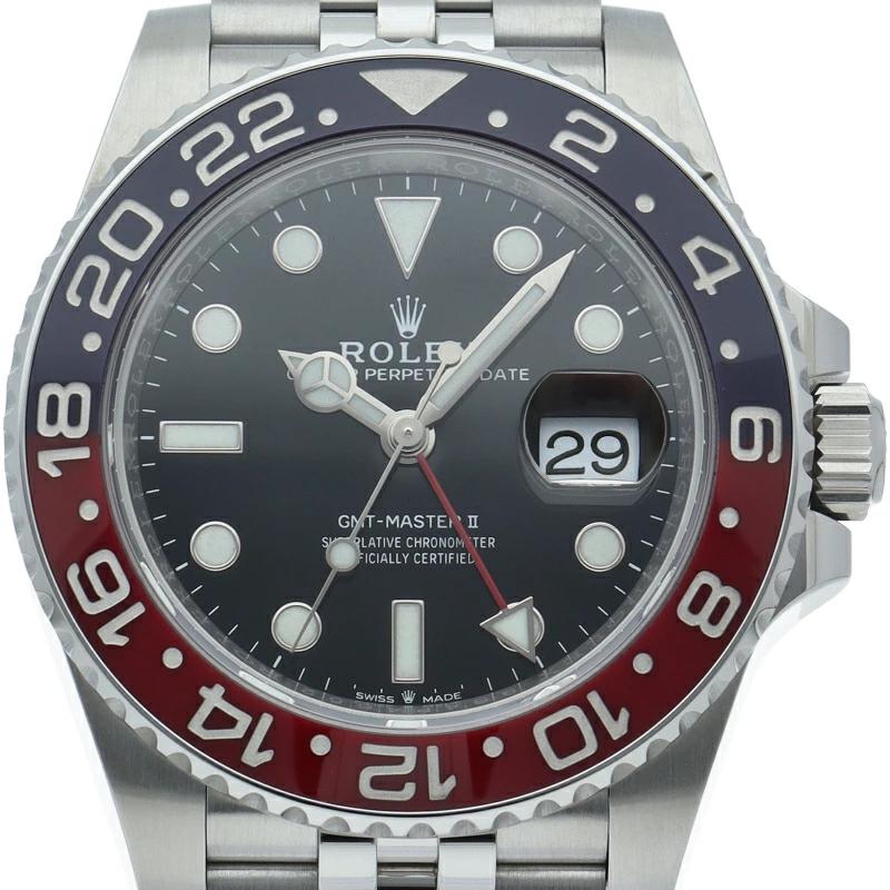 ロレックス人気モデル「GMTマスター2」のモデルチェンジした新型モデルです。セラミックベゼルにブレスやバックルも新しくなり高級感が更に増した1本です。