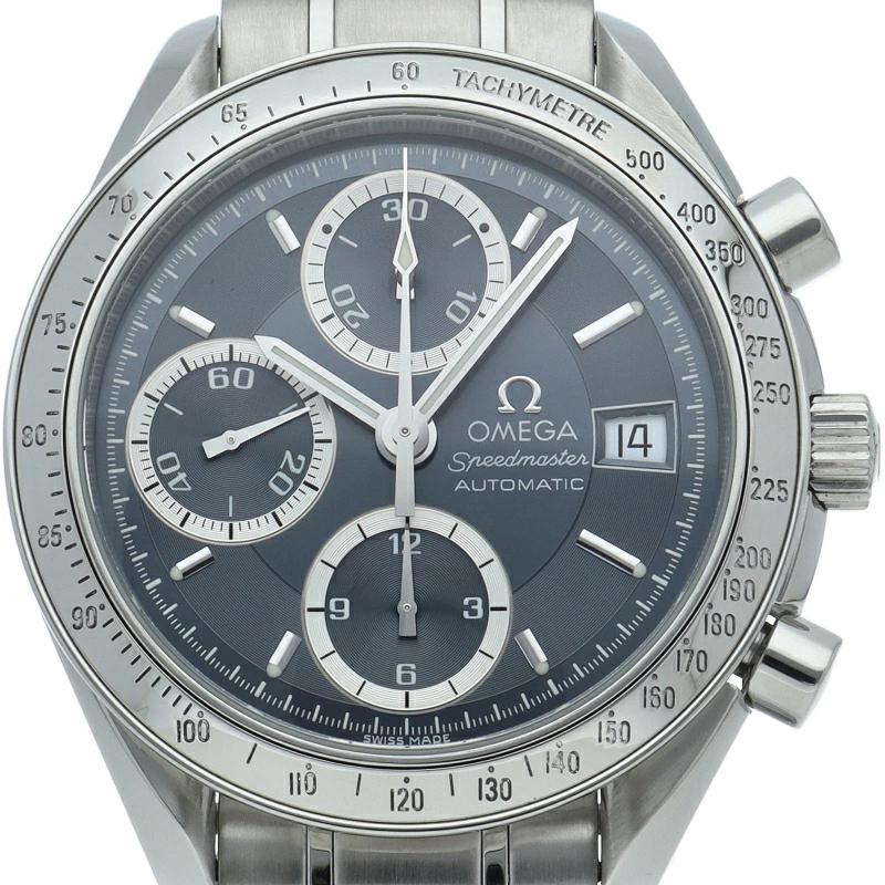 | オメガのフラッグシップモデル「スピードマスター」。人気モデル、スピードマスターデイトの「日本国内1000本限定モデル」です。ブルーに近いグレーダイアルと、シルバー縁取りのインダイアルの組み合わせがとてもシック。「日本のオメガファンだけ」に向けられてごく少数リリースされた特別な限定モデルです。 |
