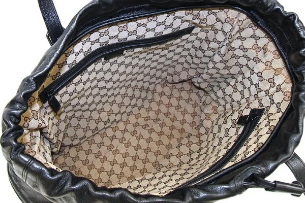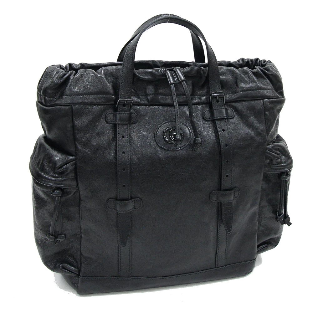 Pre-owned Gucci Drawstring Tote Bag 725664, Black Leather, Pre-owned, Black Lining with GG Logo, Large, Men's and Women's, GUCCI | Tote Bag, Shoulder Bag, Bag, Shoulder Bag, Bag, Brand Bag, Brand Name Bag, Tote Bag