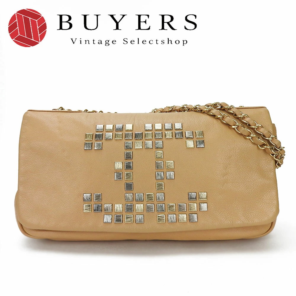 品名CHANEL シャネル チェーンショルダーバッグ 12番台 ベージュ ココマーク スタッズ レザー 革 ゴールド金具 肩掛け 女性 レディース Chain Shoulder Bag coco logo beige【中古】