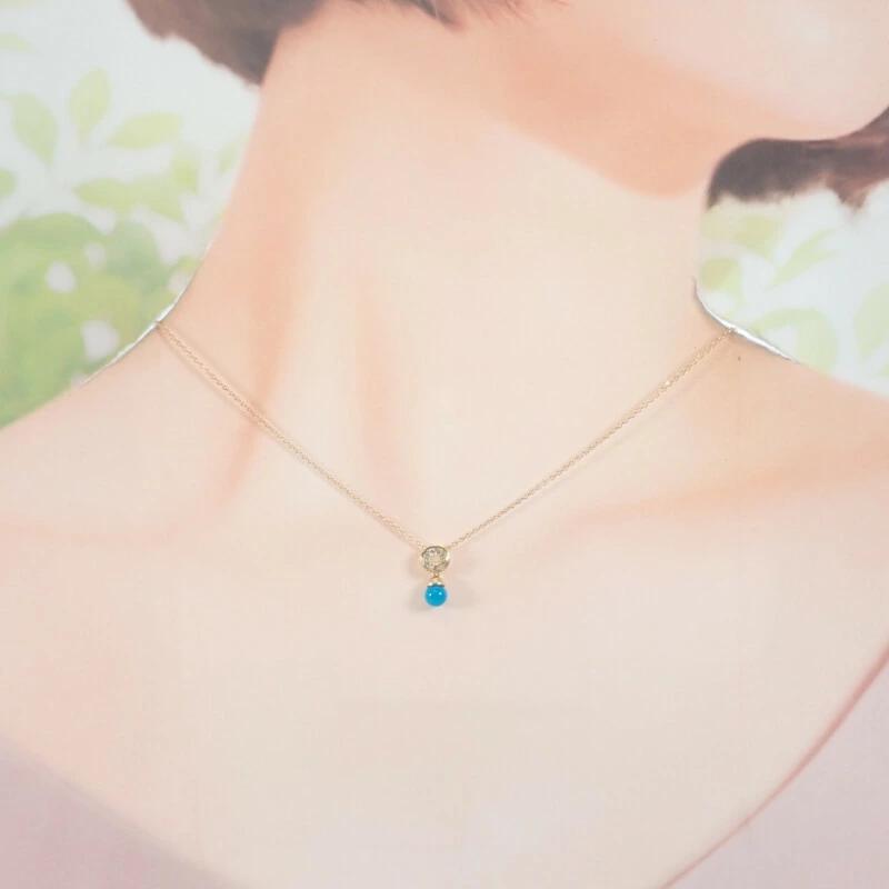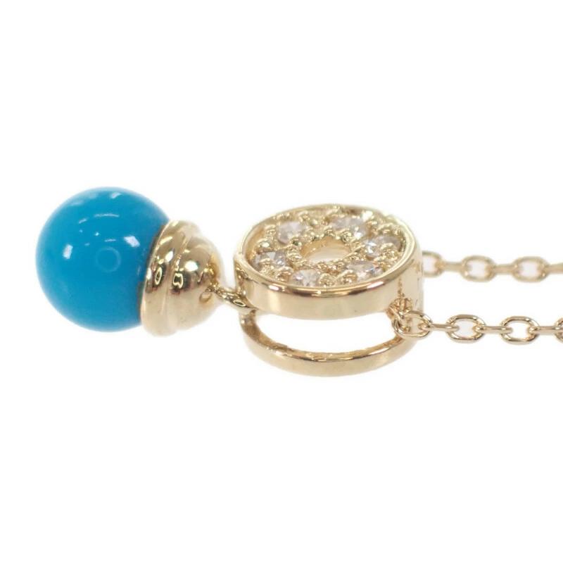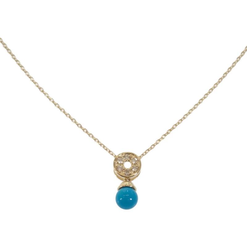鮮やかなターコイズブルーが目を惹く、K18イエローゴールドのネックレス。
