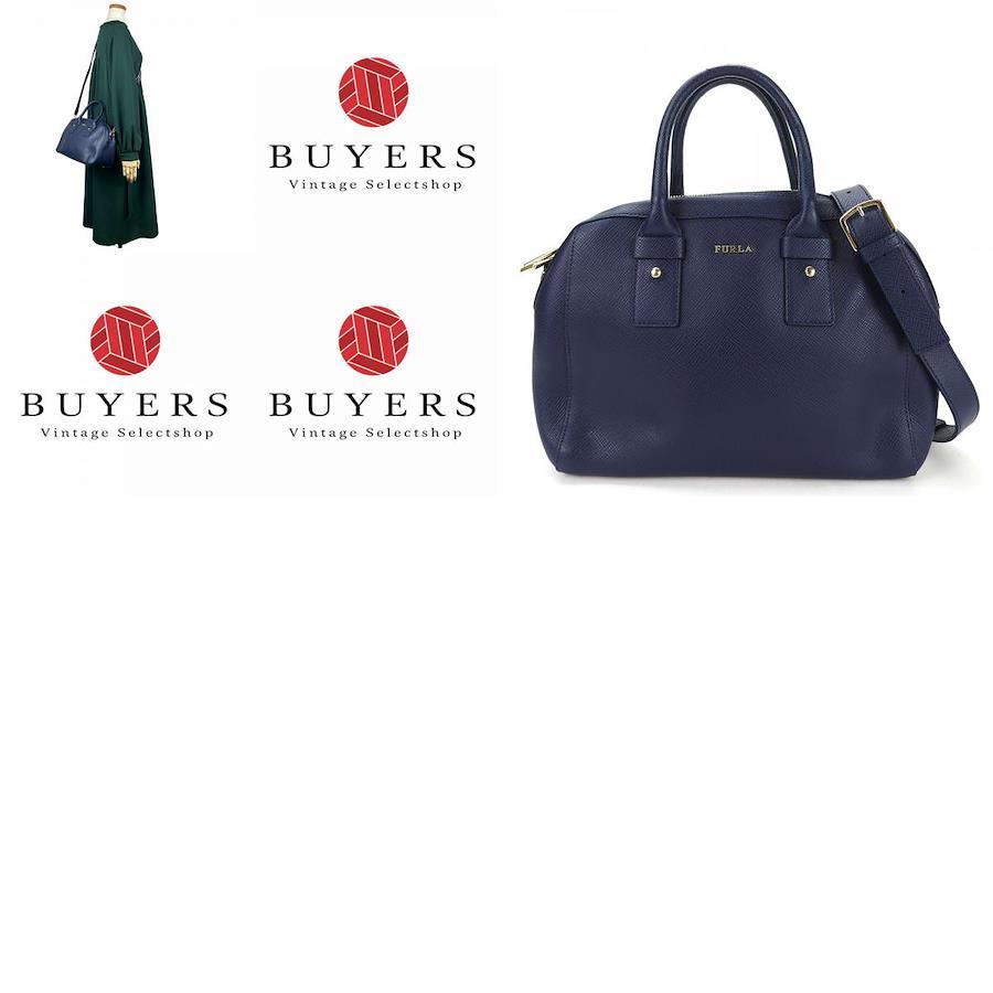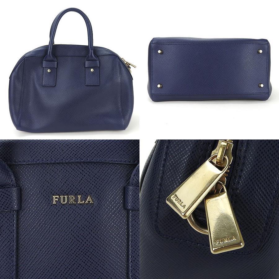 品名【中古】フルラ 2WAY ハンドバッグ ショルダー 斜め掛け レザー 革 ネイビー ゴールド金具 普段使い レディース 女性 FURLA hand bag shoulder navy