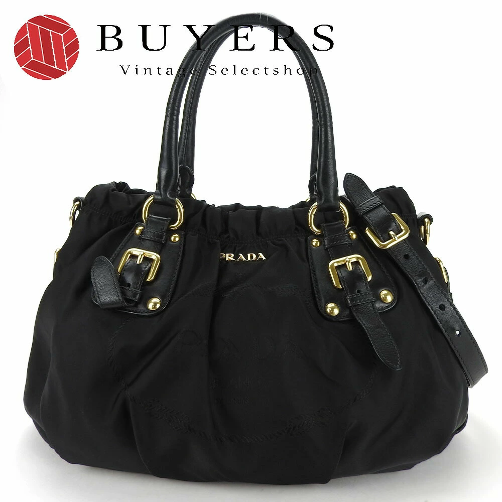 | 品名 | 【中古】プラダ ハンドバッグ 2WAY ナイロン レザー ブラック 黒 普段使い カジュアル ゴールド金具 レディース 女性 PRADA handbag shoulder nylon leather black |