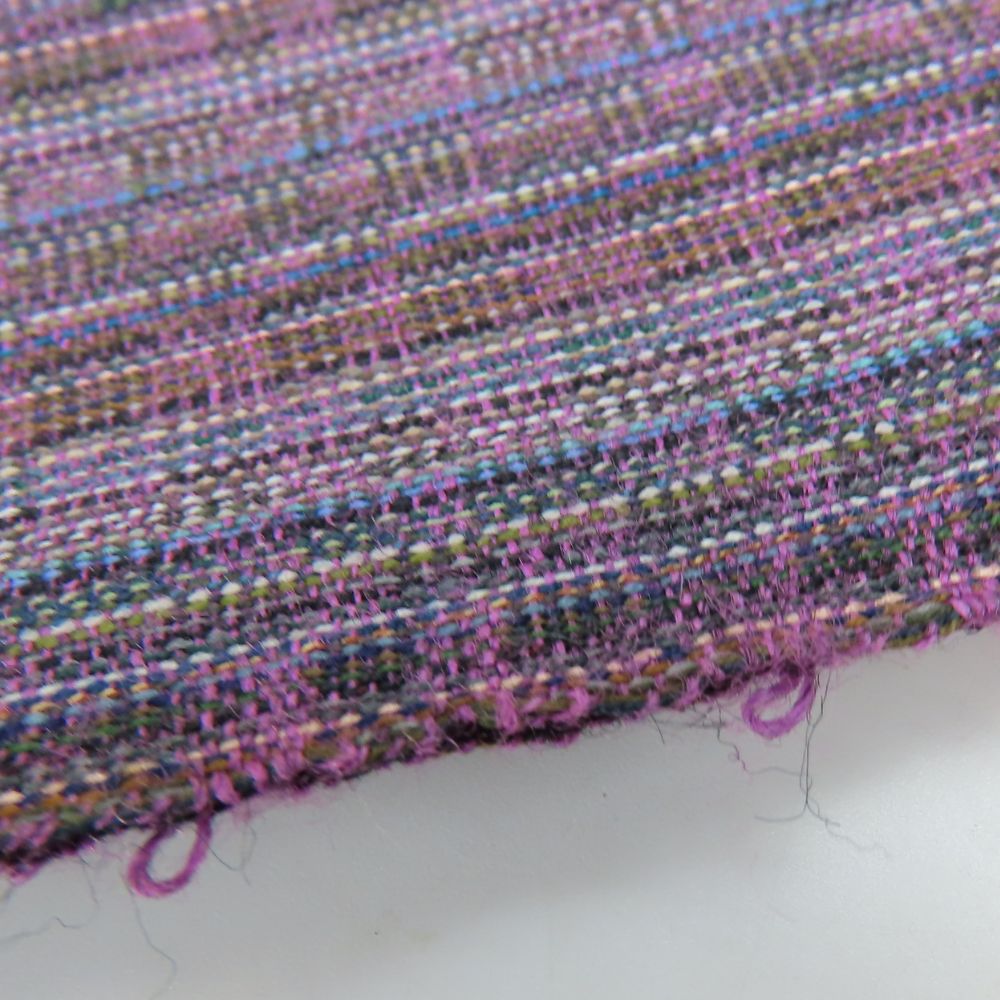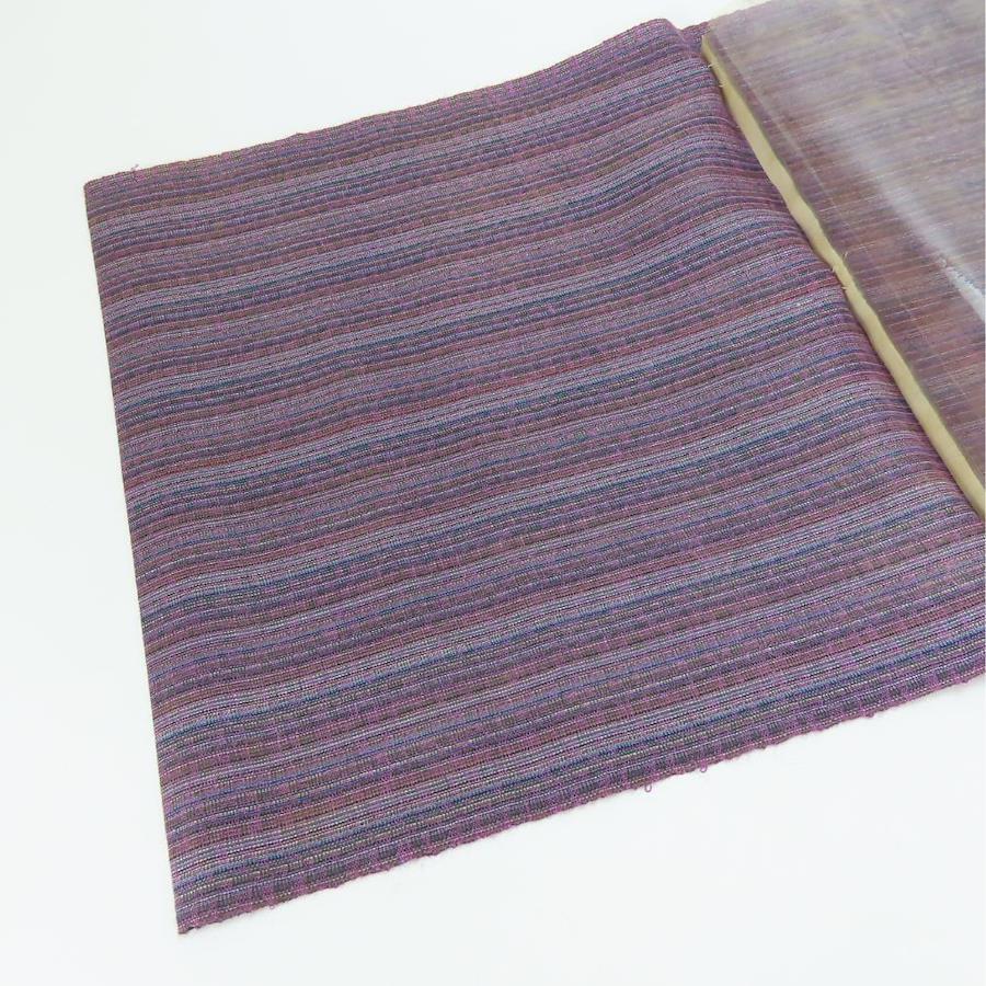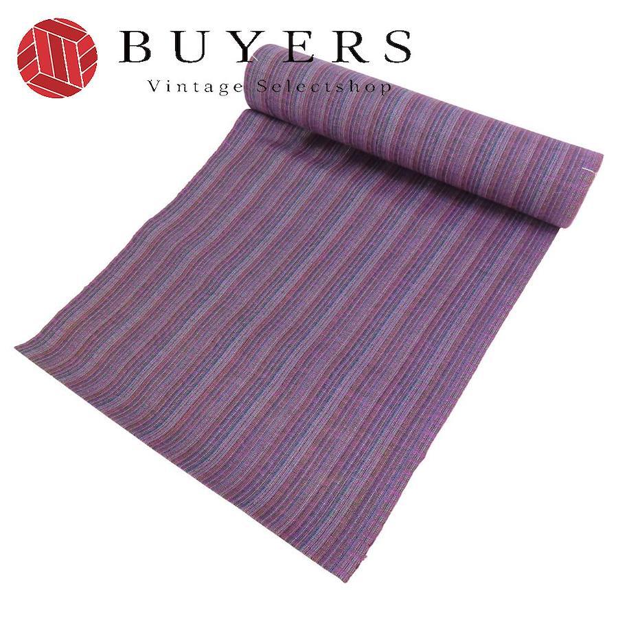| 品名 | 【中古】 反物 着尺 ウール パープル系 ピンク 紬 別誂 縦縞模様 メンズ 男性 |
