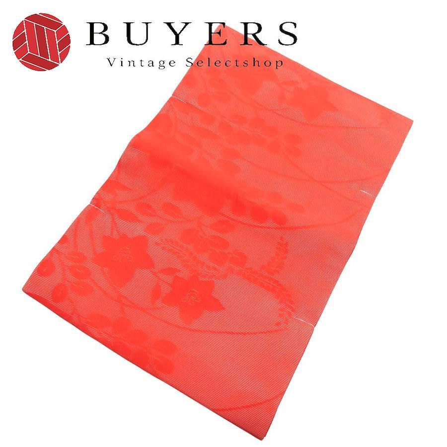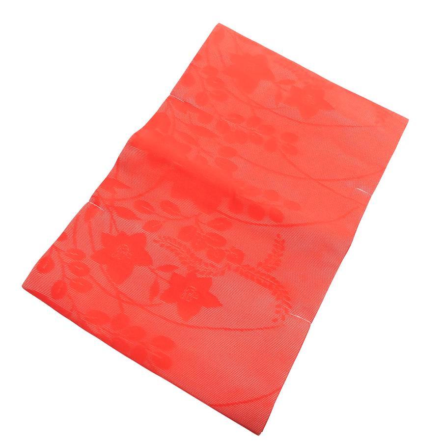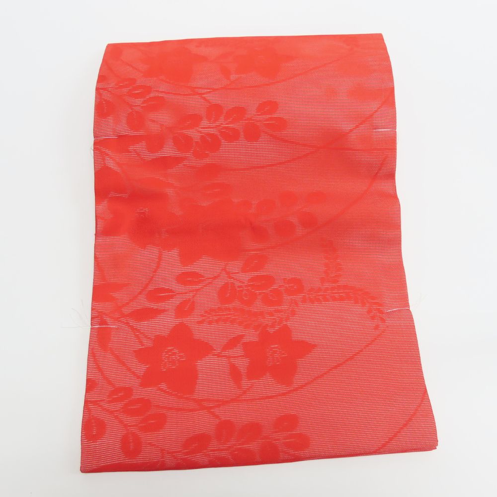 | 品名 | 【中古】 名古屋帯 しつけ糸あり 八寸 正絹(金銀糸除く) レッド 草花柄 お洒落 平仕立て レディース 女性 |