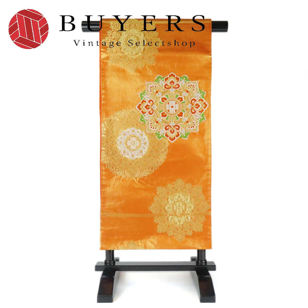 | 品名 | 【中古】袋帯 正倉院文様 華文 オレンジ地 金地 振袖用 成人式 六通柄 正絹 シルク レディース 女性 和装 呉服 着物 |