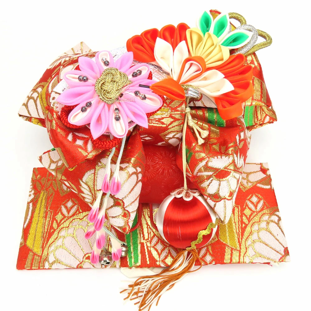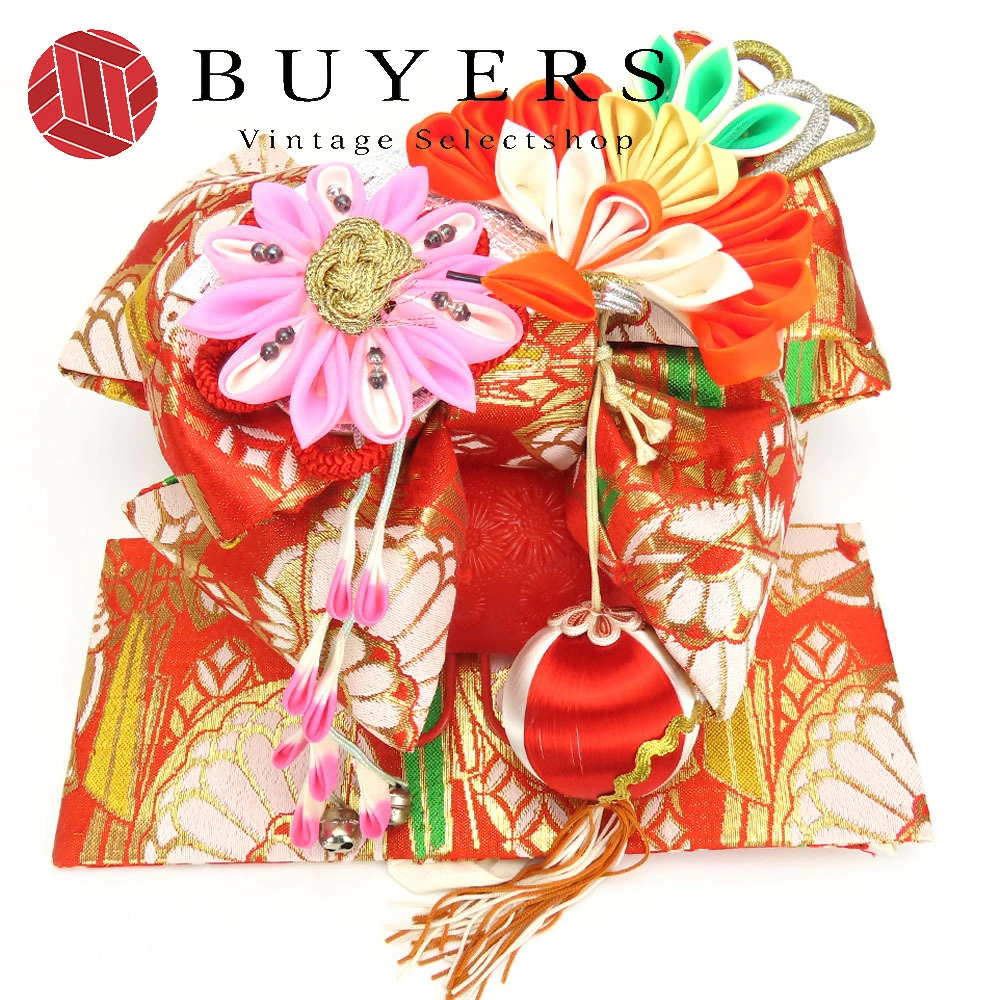 品名【中古】 その他帯 七五三 ポリエステル 化繊 朱 桃 付け帯 飾り帯 結び帯 鞠