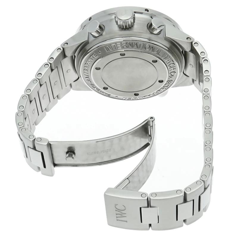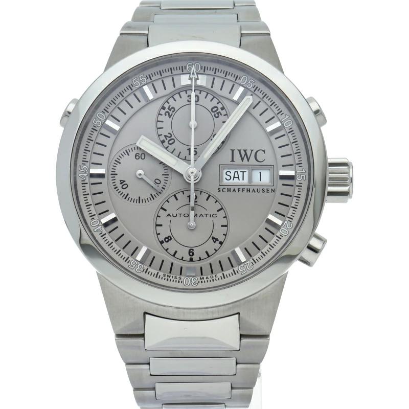 | 永くIWCのスポーツラインを引っ張ってきた GSTシリーズ。現在のスポーツラインの看板であるアクアタイマーの原型ともいえるモデルです。こちらはスプリットセコンドクロノグラフを搭載したハイスペックモデル。クロノグラフの秒針が2本あるのでラップタイムの計測が可能です。 |