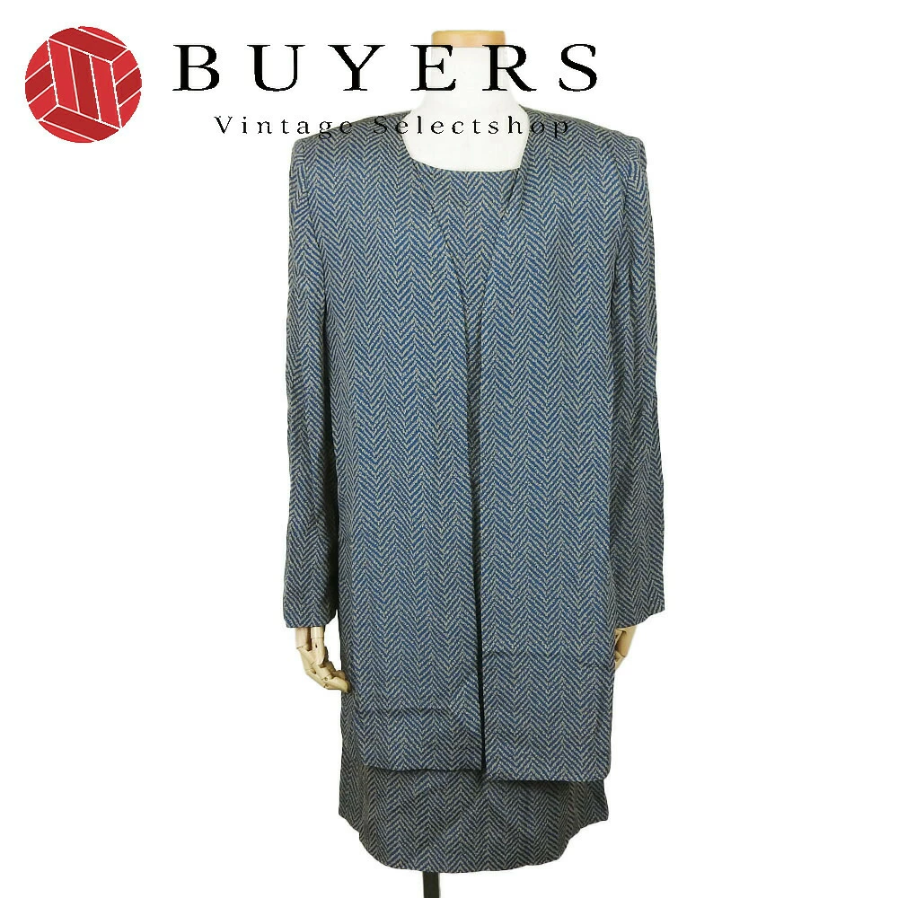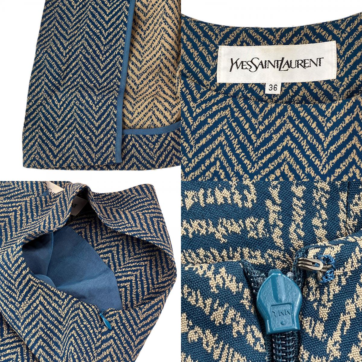 品名【中古】 イヴ・サンローラン アンサンブル 36 アセテート レーヨン グリーン系 ベージュ ワンピース ジャケット ヘリンボーン レディース 女性 YVES SAINT LAURENT