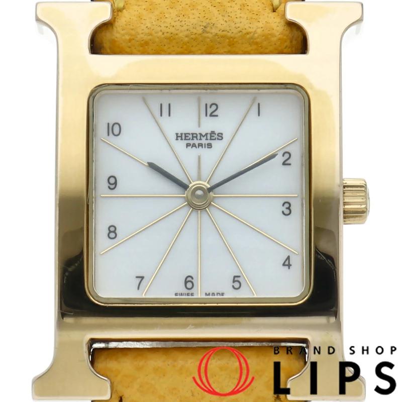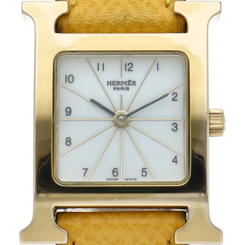 | エルメスの人気モデル「Hウォッチ」。エルメスの頭文字である「H」をモチーフに作られたシンプルでオーソドックスな1本。□J刻印。 |