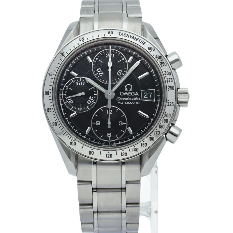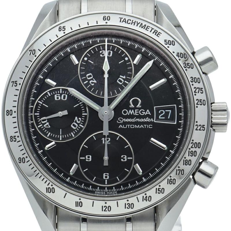 | オメガの代表的な人気シリーズ「スピードマスターデイト」。クロノグラフ・デイト表示機能付きと便利で実用性のある1本です。 |
