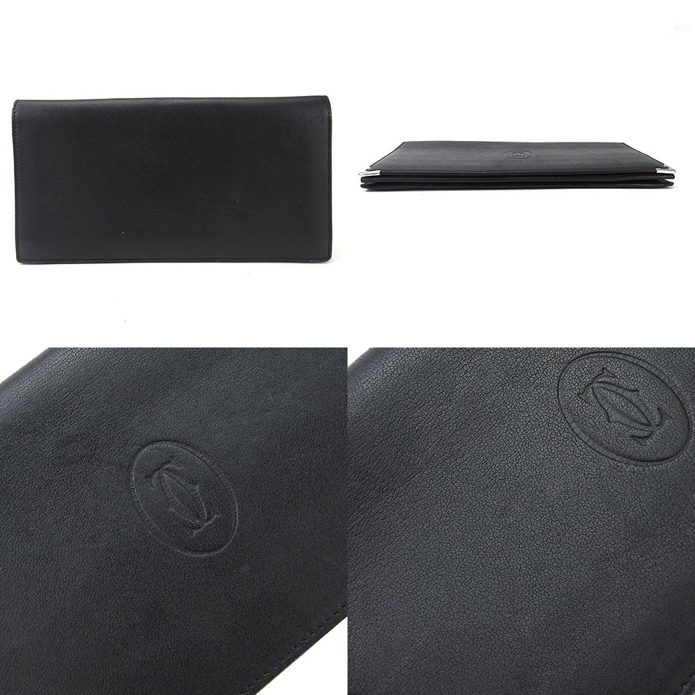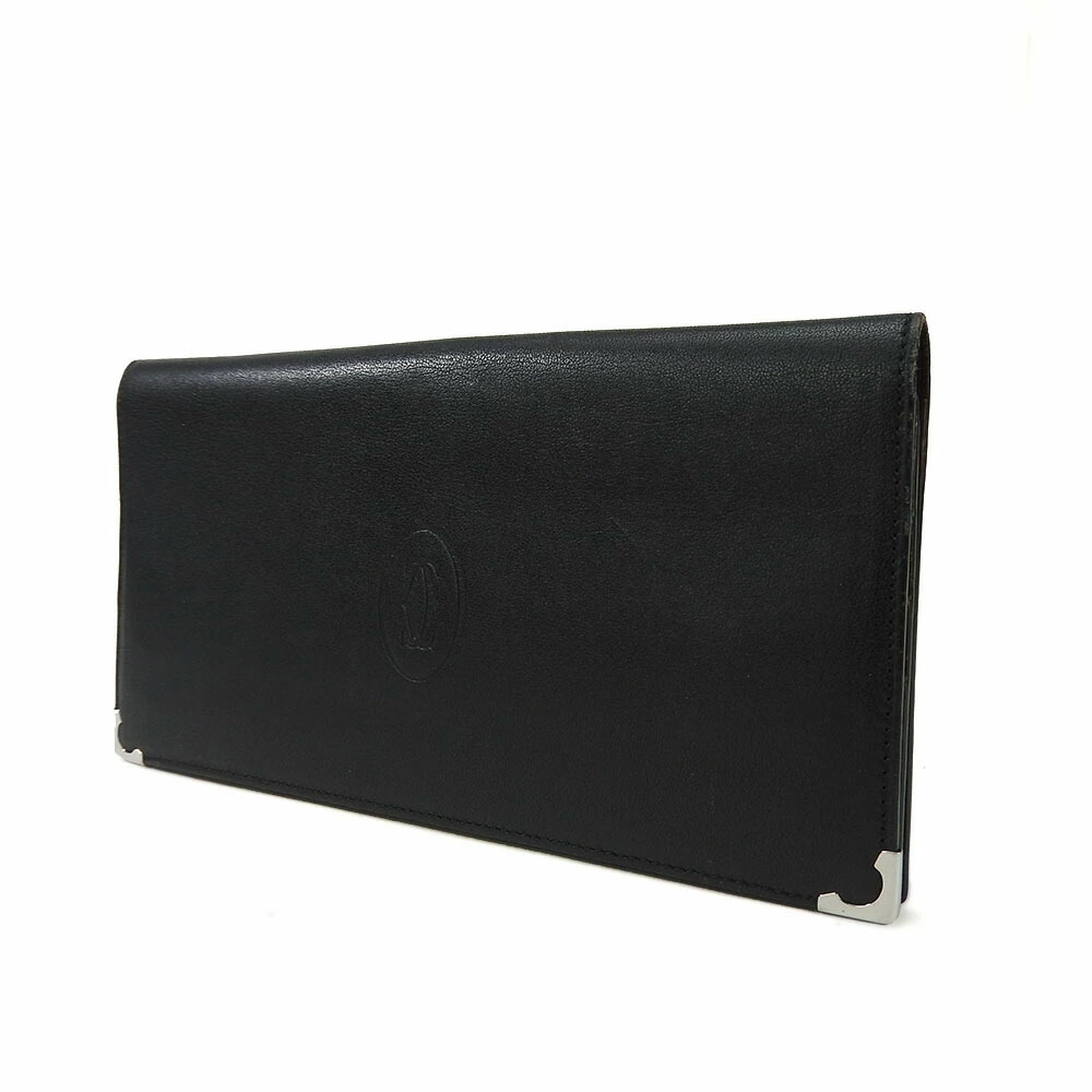 品名【中古】 カルティエ 二つ折り長財布 カボションライン レザー 革 ブラック 黒 シルバー金具 普段使い 小物 メンズ レディース 男性 女性 Cartier wallet leather black