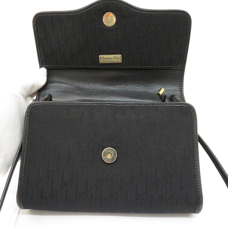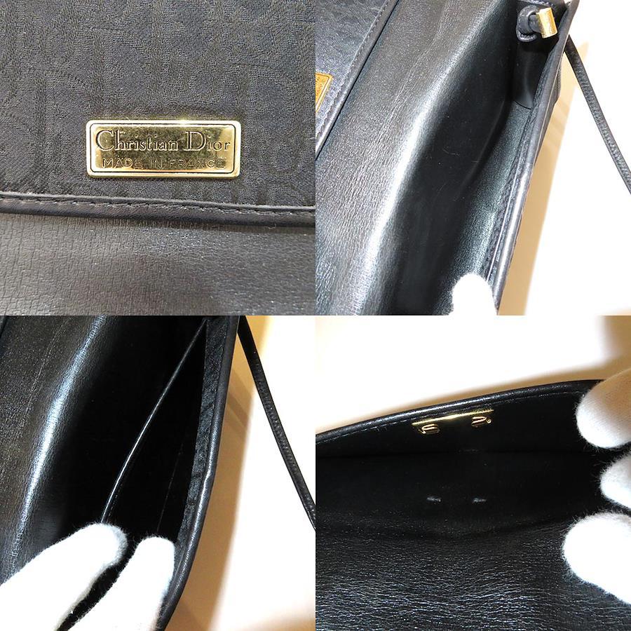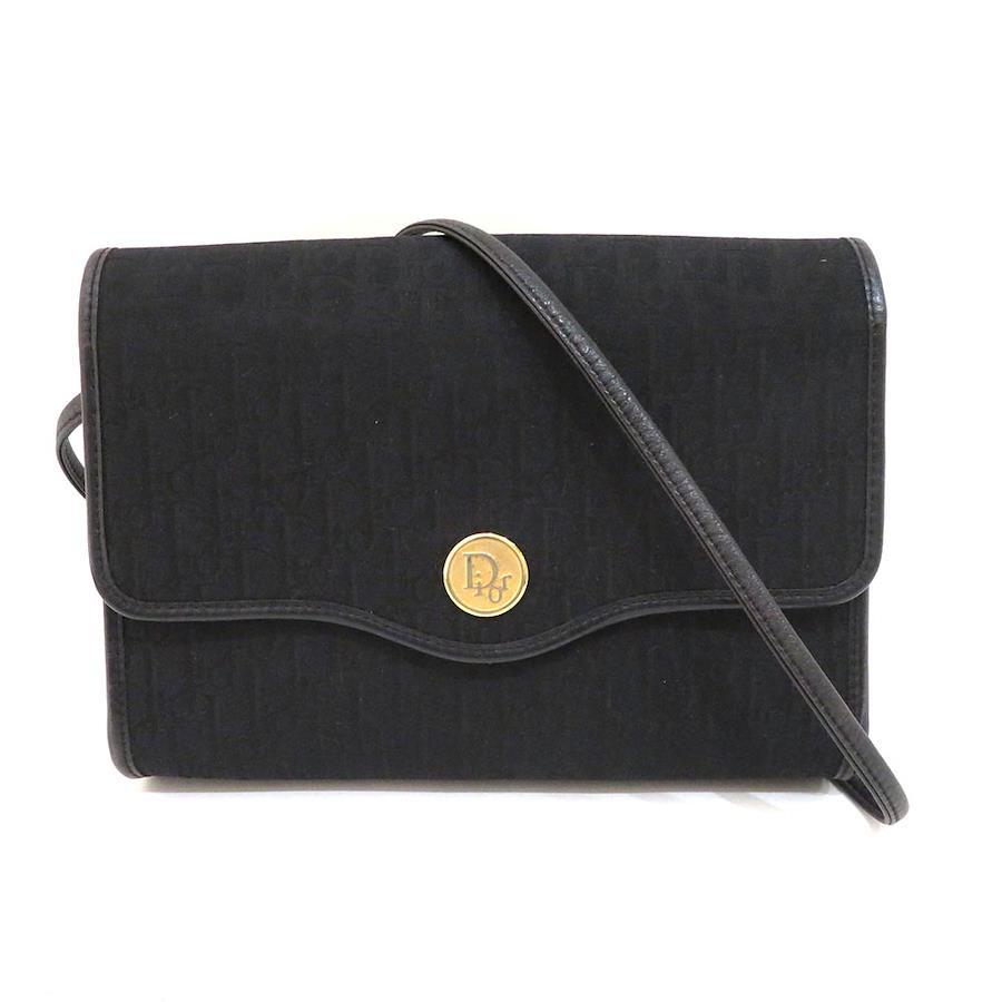 [Used] Christian Dior Trotter Pattern Canvas Leather Shoulder Bag B Rank Black Gold Plated Logo Dior Old Women's