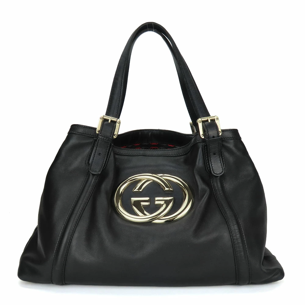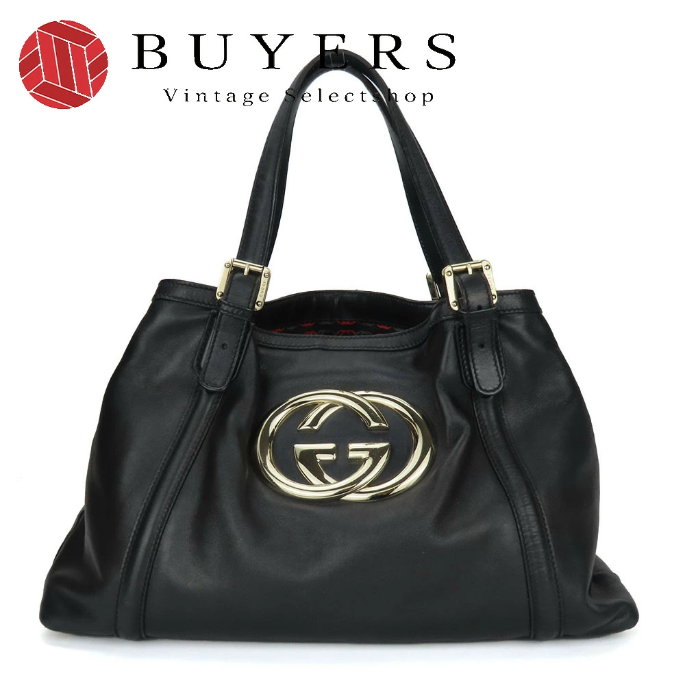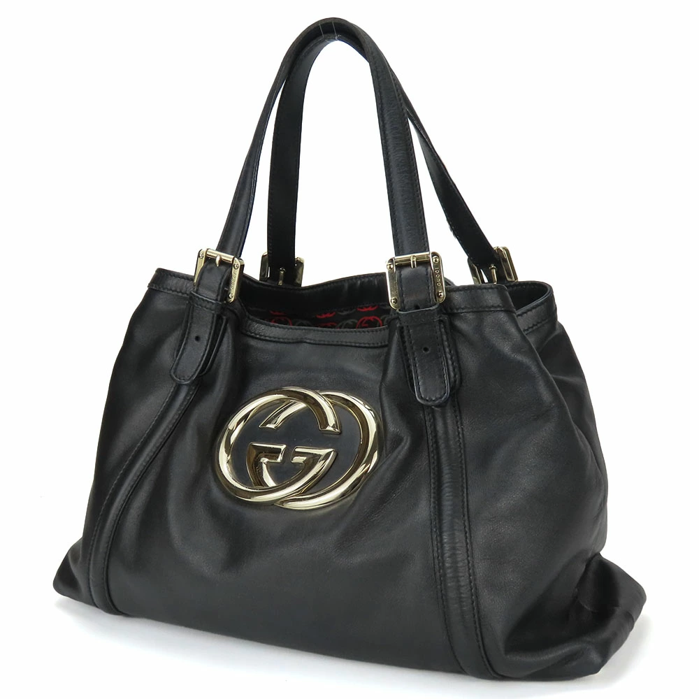 | 品名 | 【中古】 グッチ トートバッグ ニューブリット ダブルG 162094 インターロッキング レザー ブラック ゴールド金具 肩掛け 普段使い GG レディース 女性 GUCCI |