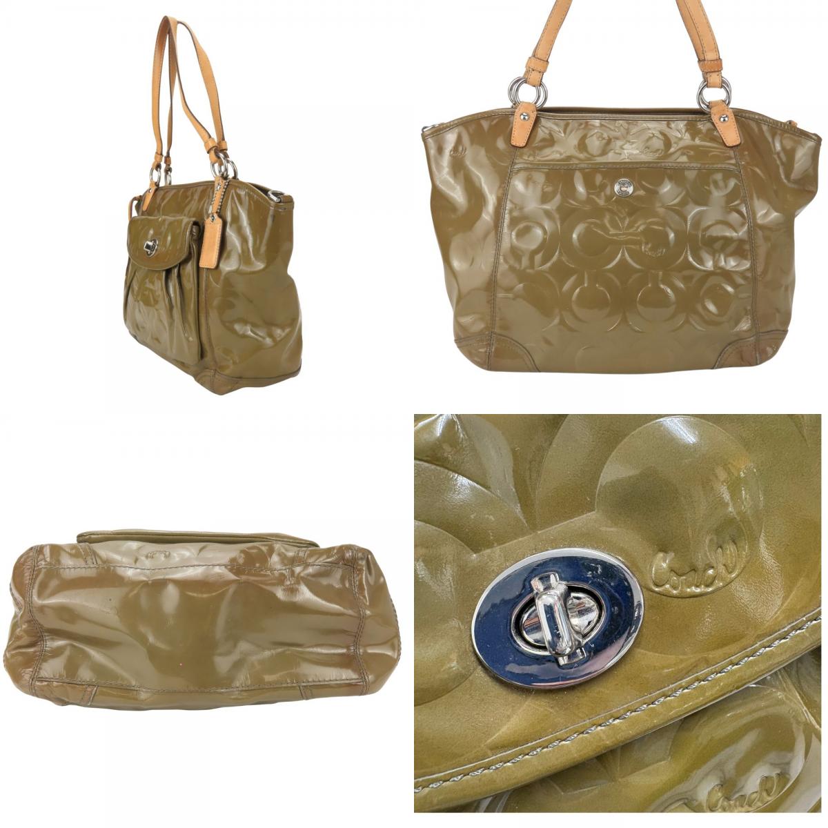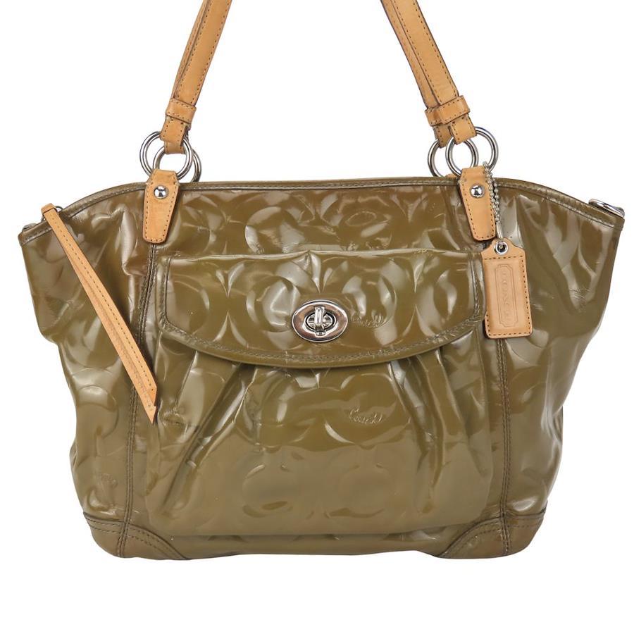 | 品名 | 【中古】 コーチ トートバッグ オプアート 13178 シグネチャー パテントレザー レザー グリーン系 エナメル 普段使い カジュアル レディース 女性 COACH |