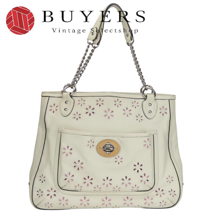 | 品名 | 【中古】 コーチ トートバッグ 22438 ポピー アイレット レザー ホワイト 肩がけ チェーン 普段使い レディース 女性 COACH |
