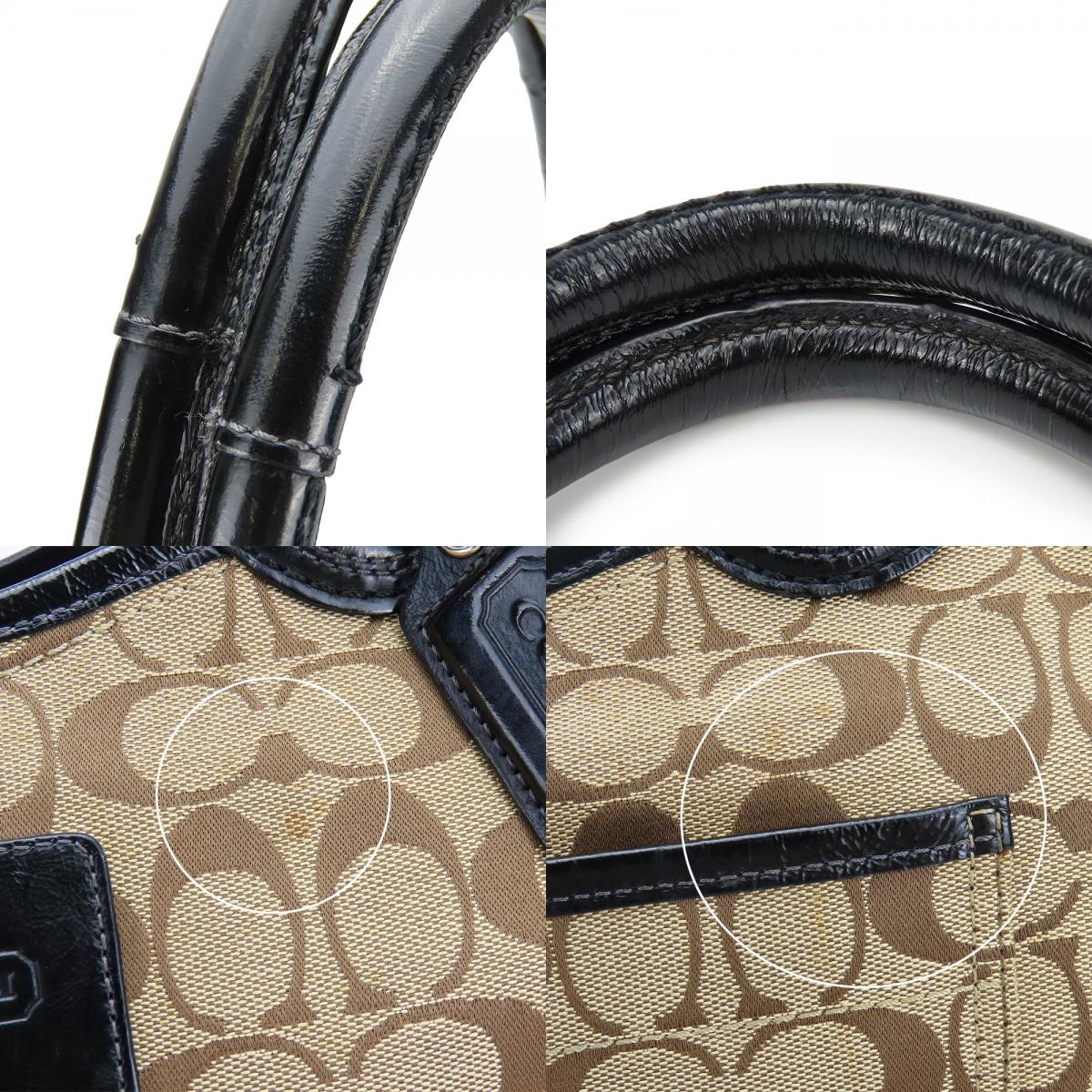| 品名 | 【中古】 コーチ トートバッグ F14385 シグネチャー キャンバス パテントレザー ベージュ ブラック シルバー金具 肩掛け レディース 女性 COACH |
