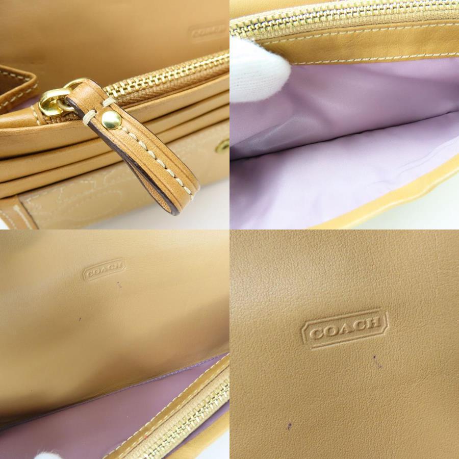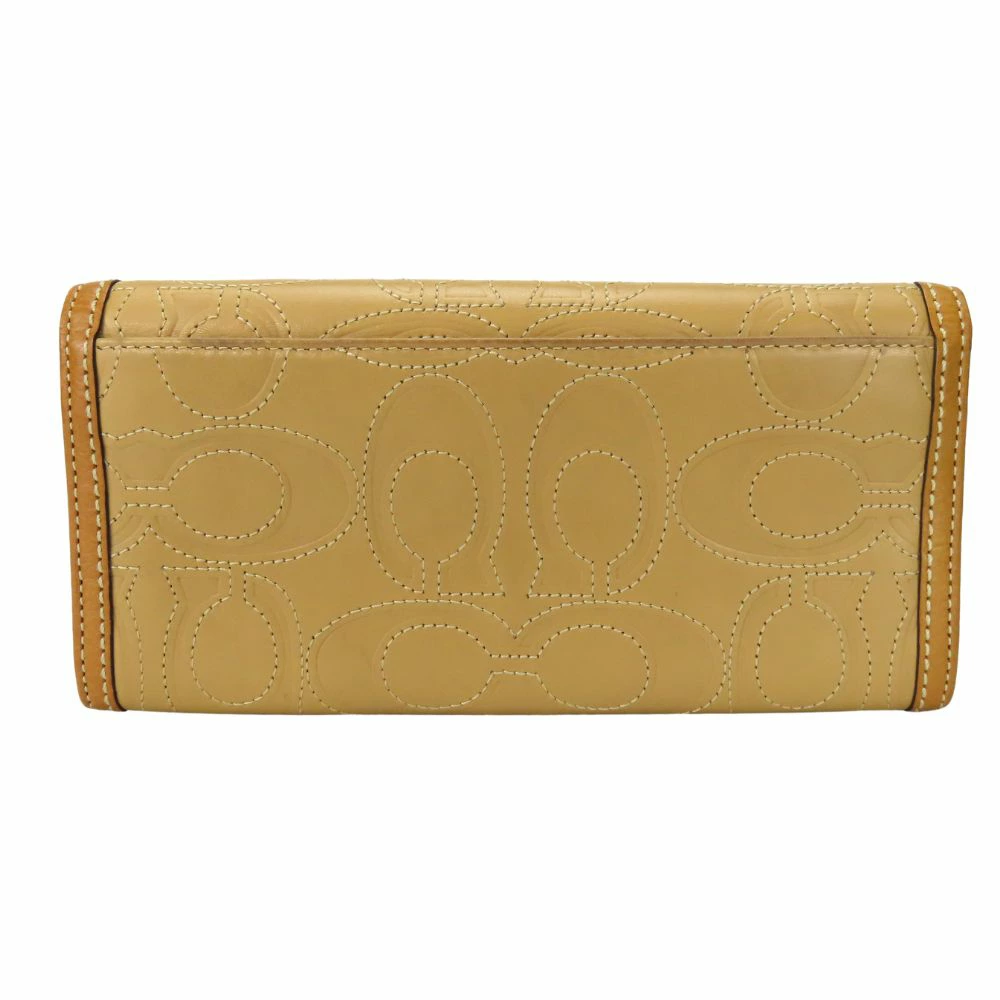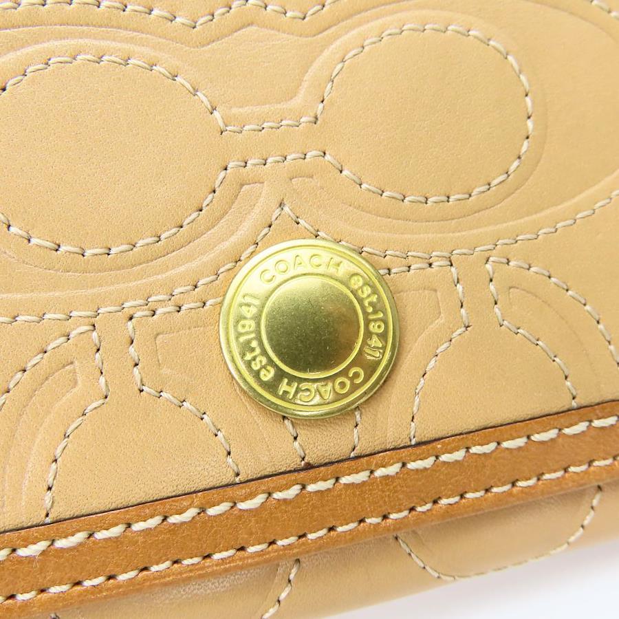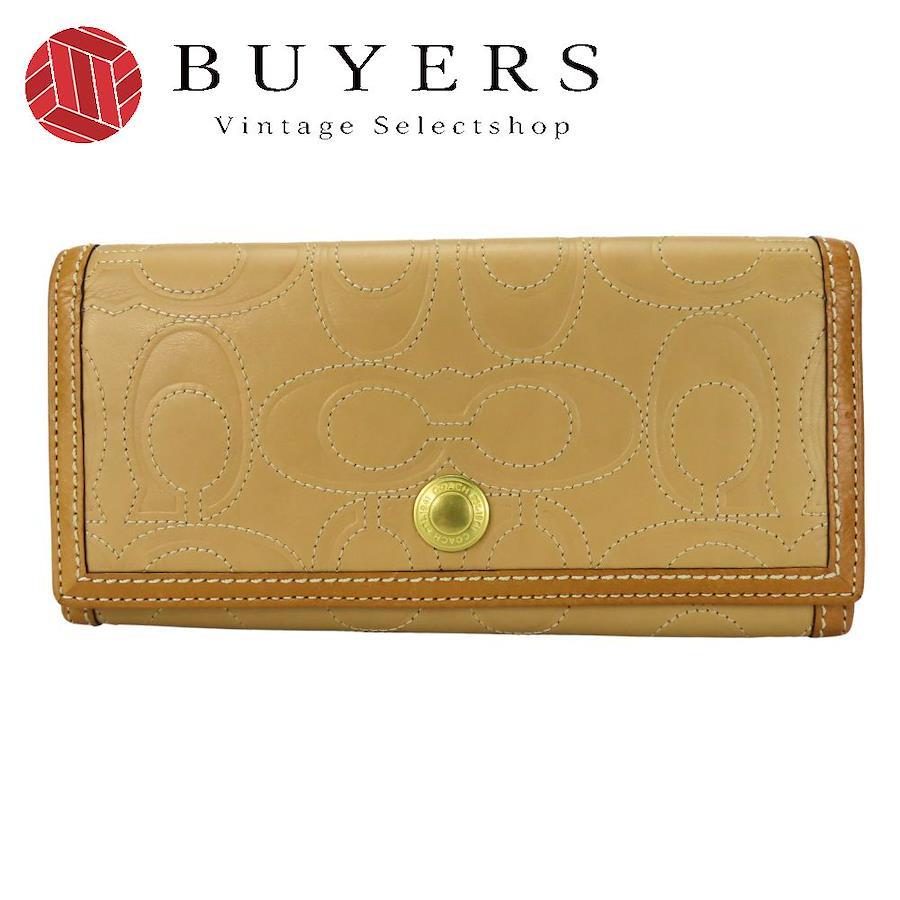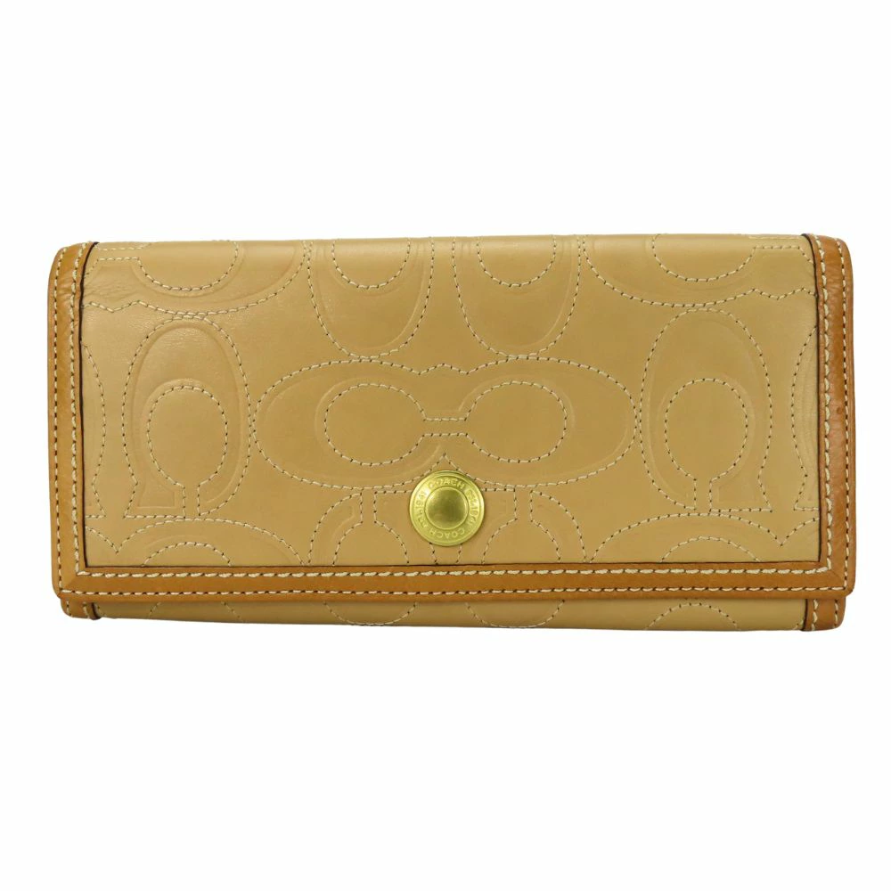 品名【中古】 コーチ 長財布 シグネチャー ステッチ レザー ブラウン ベージュ ゴールド金具 型押し 二つ折り 小物 レディース 女性 COACH