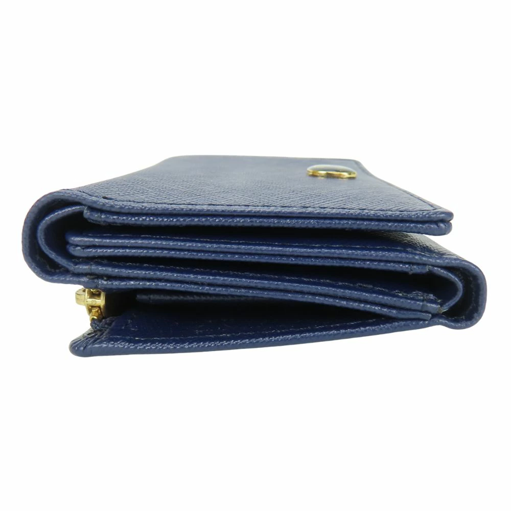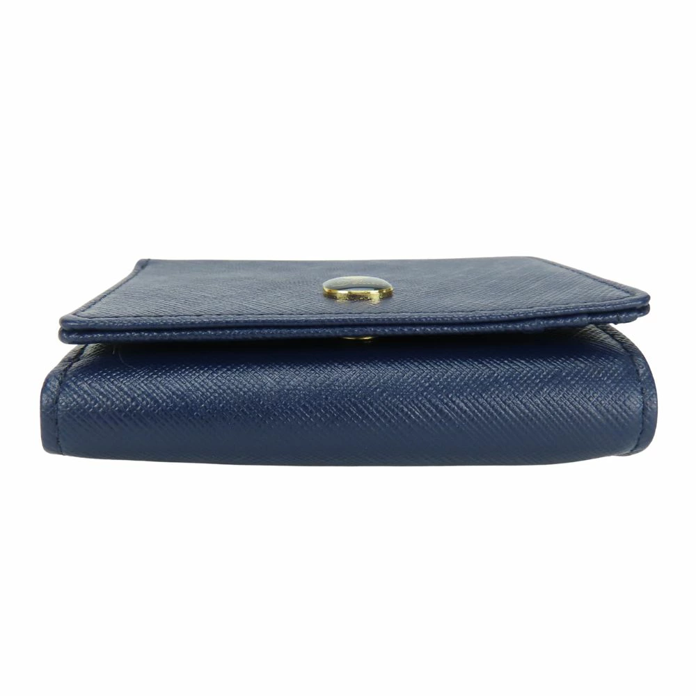 Pre-owned Samantha Thavasa Deluxe Tri-fold Wallet, Synthetic Leather, Navy Blue with Gold Hardware, Compact Wallet, Women's