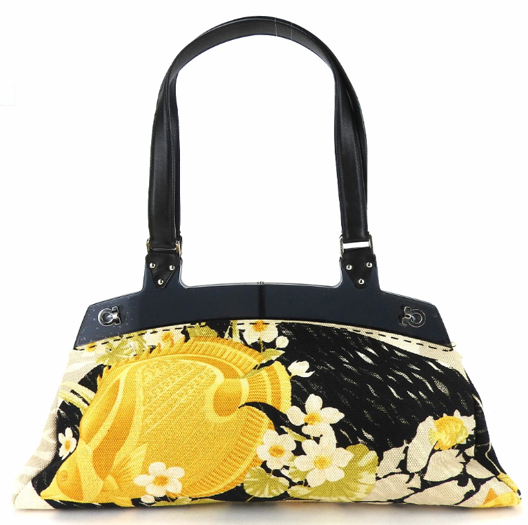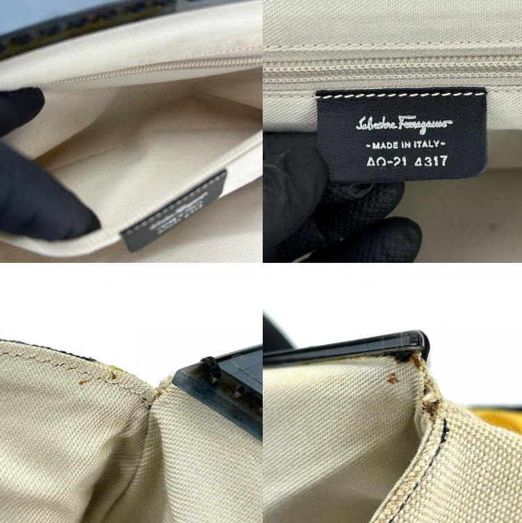 | 品名 | 【中古】 サルヴァトーレフェラガモ トートバッグ AQ-21 4317 ガンチーニ キャンバス レザー プラスチック NERO ブラック イエロー 総柄 レディース 女性 Salvatore Ferragamo |