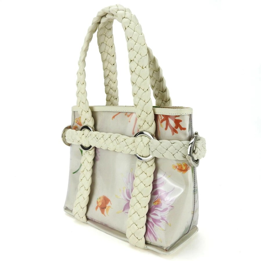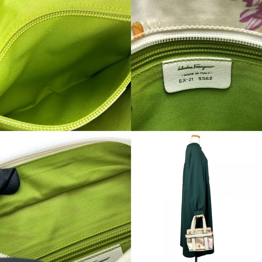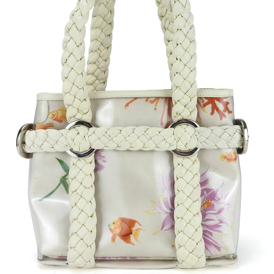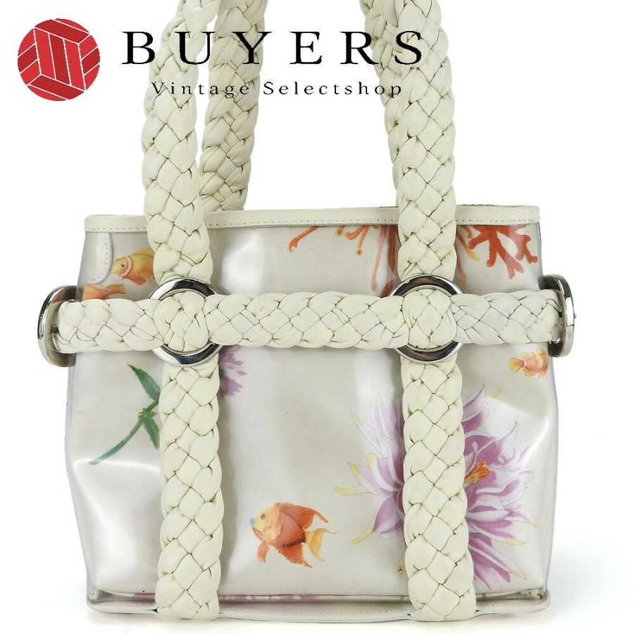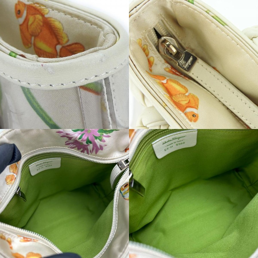 | 品名 | 【中古】 サルヴァトーレフェラガモ ハンドバッグ EX-21 5362 サテン ビニール レザー アイボリー マルチカラー シルバー金具 花 魚 レディース 女性 Salvatore Ferragamo |