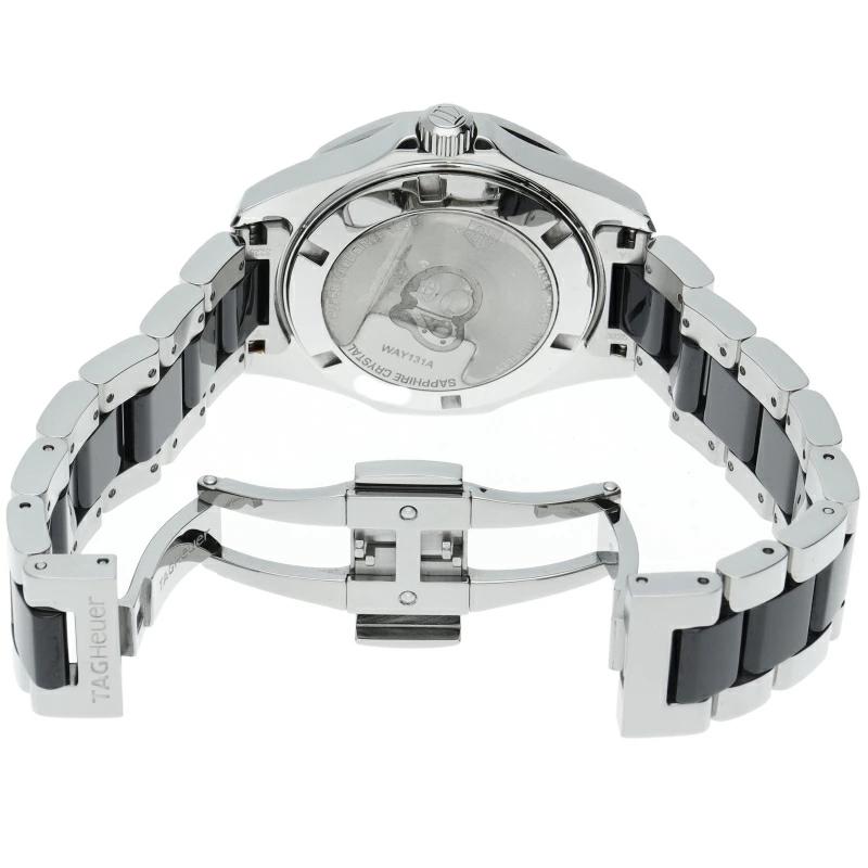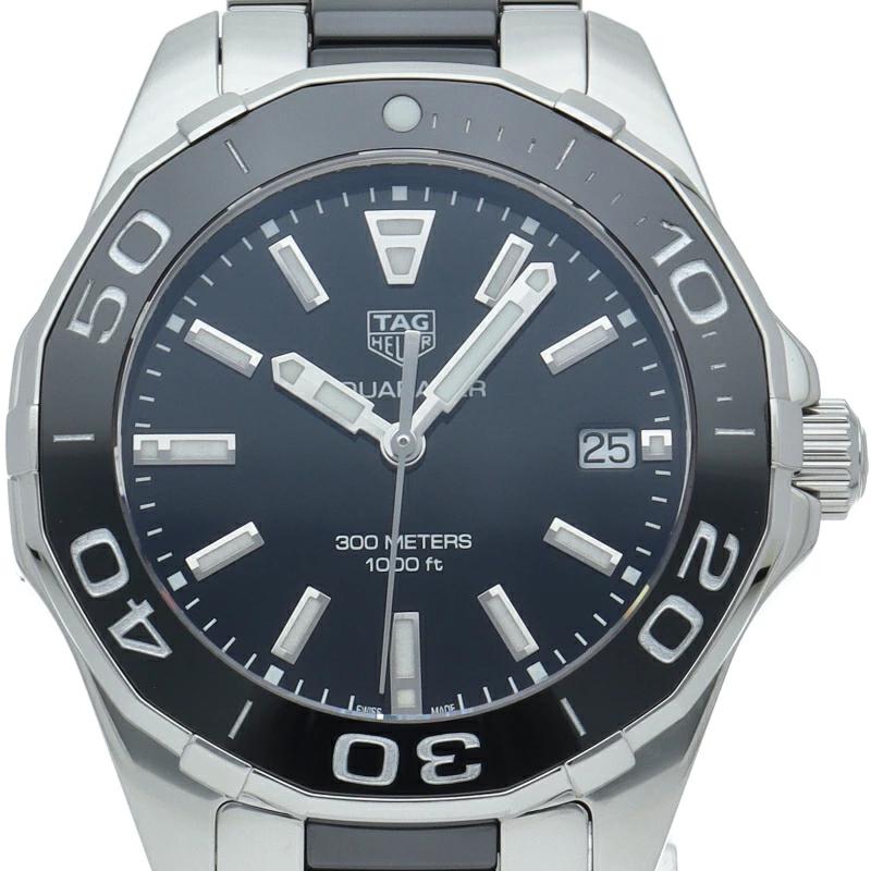 | タグホイヤーのアクアレーサーです。 こちらは2016年に発表されたステンレスとセラミックを素材に使用したモデルです。スポーティーなモデルですが、ベゼルに施されたダイヤモンドが女性向けのデザインに仕上がっております。300Mの高い防水性も備えており、実用面でも優れたモデルです。 |