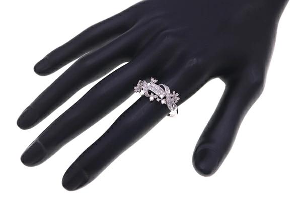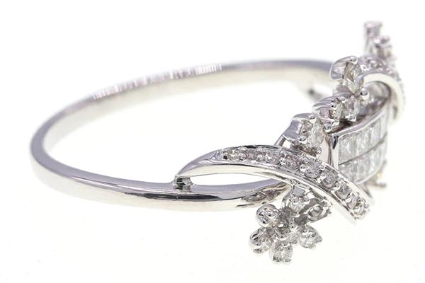 Pre-owned 0.64ct diamond ring in 18k white gold, size 19. Pre-owned jewelry, women's design. 0. | Diamond ring in 18k white gold. Vintage diamond ring with floral motif and melee diamonds. Birthstone.