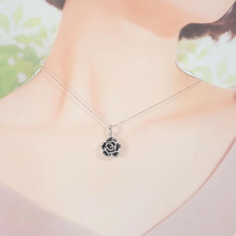 繊細なダイヤモンドが花びらを縁取り、ブラックダイヤモンドが花の奥深い陰影を演出し気品とクールな魅力を放ちます。