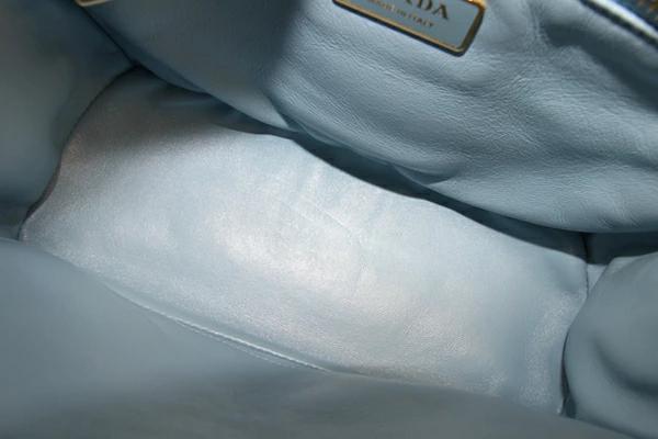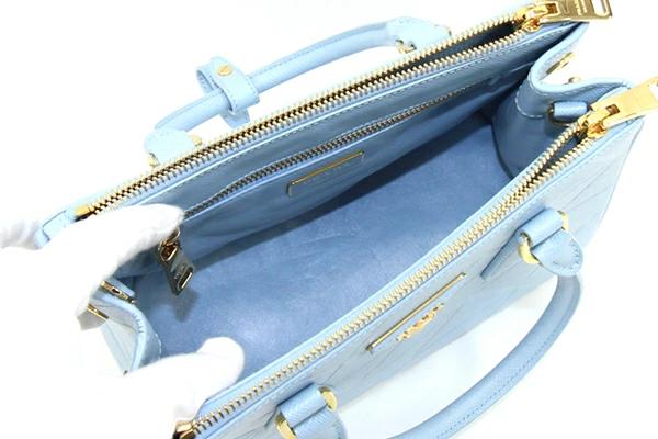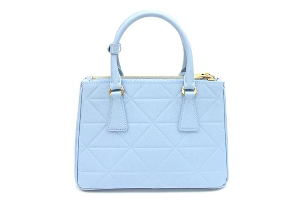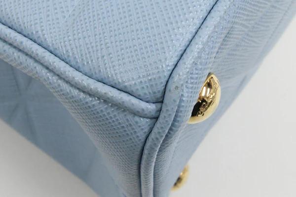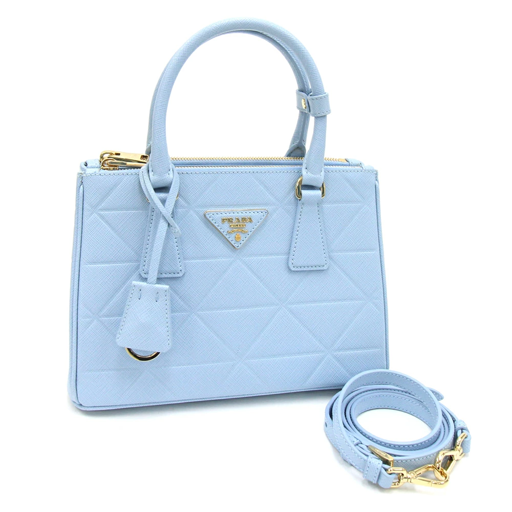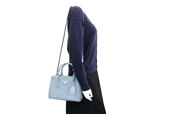 Pre-owned Prada Galilea Small 2-Way Handbag (1BA896) in Light Blue Leather. This pre-owned shoulder bag features a logo and quilted details. Perfect for crossbody or shoulder use. [PRADA] | Brand Name Bag, Designer Bag, Handbag, Shoulder Bag