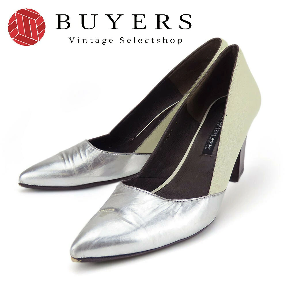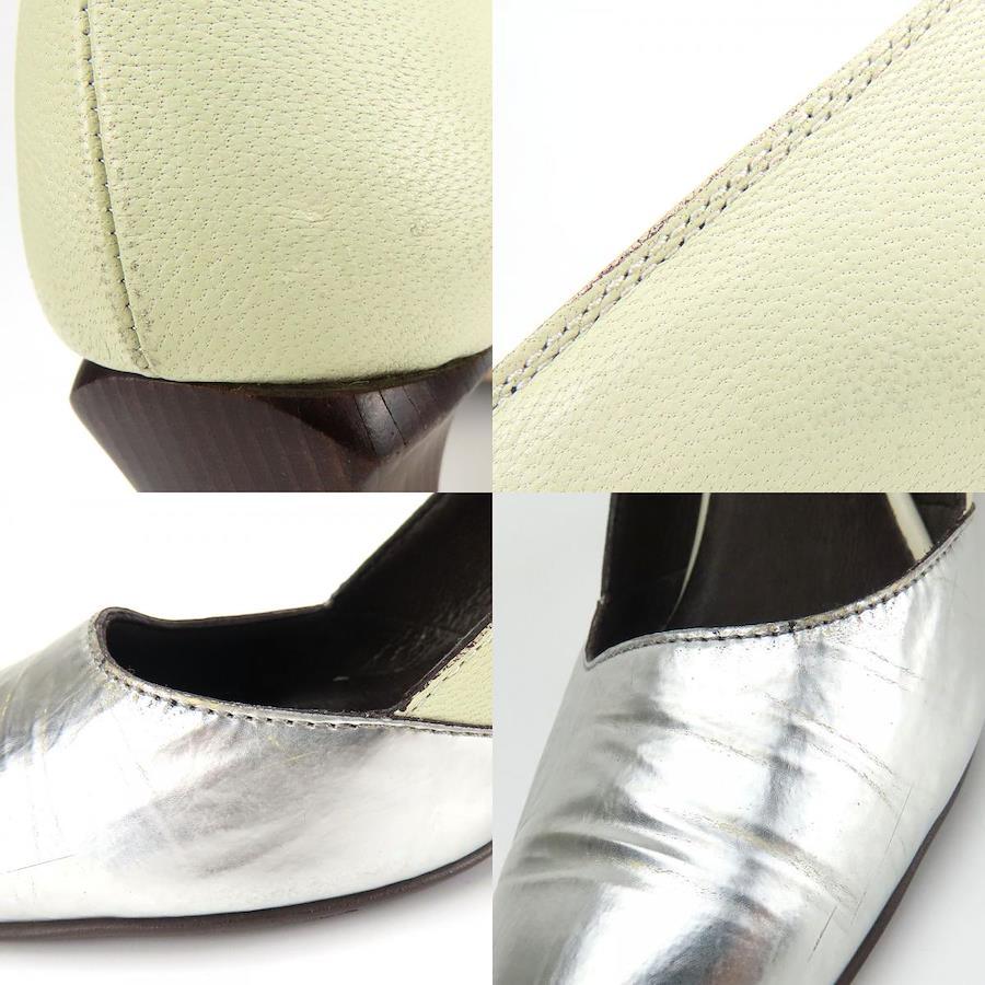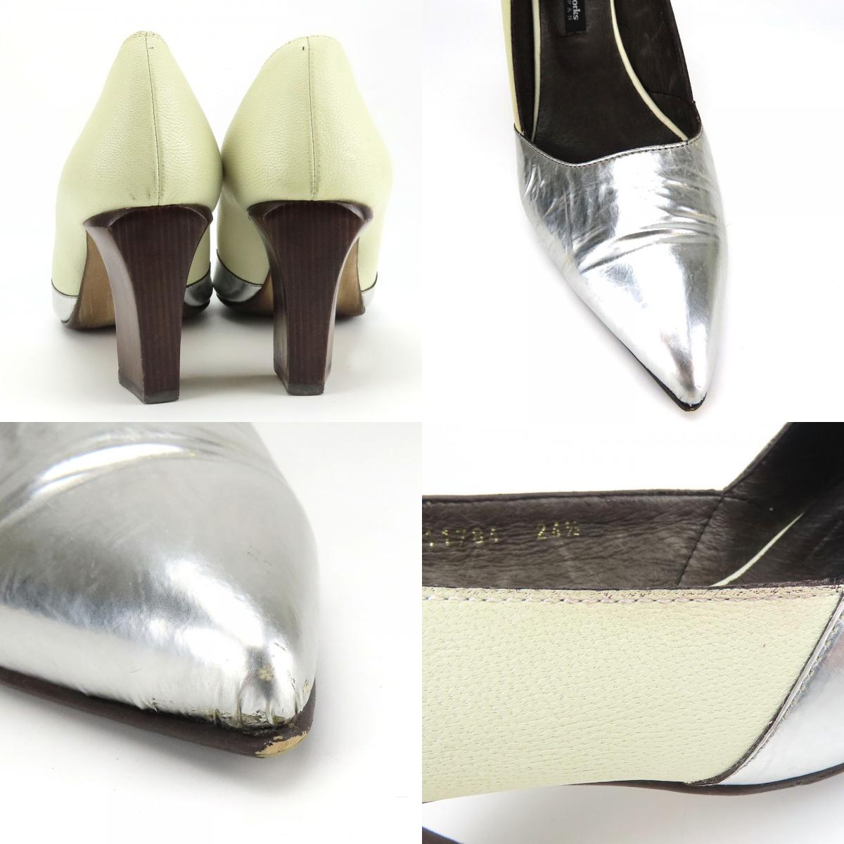 品名【中古】 ラボキゴシワークス パンプス 24 1/2 レザー シルバー ライトグリーン系 JPサイズ約24.5cm ヒール約7.5cm シューズ 靴 レディース 女性 RABOKIGOSHI Works