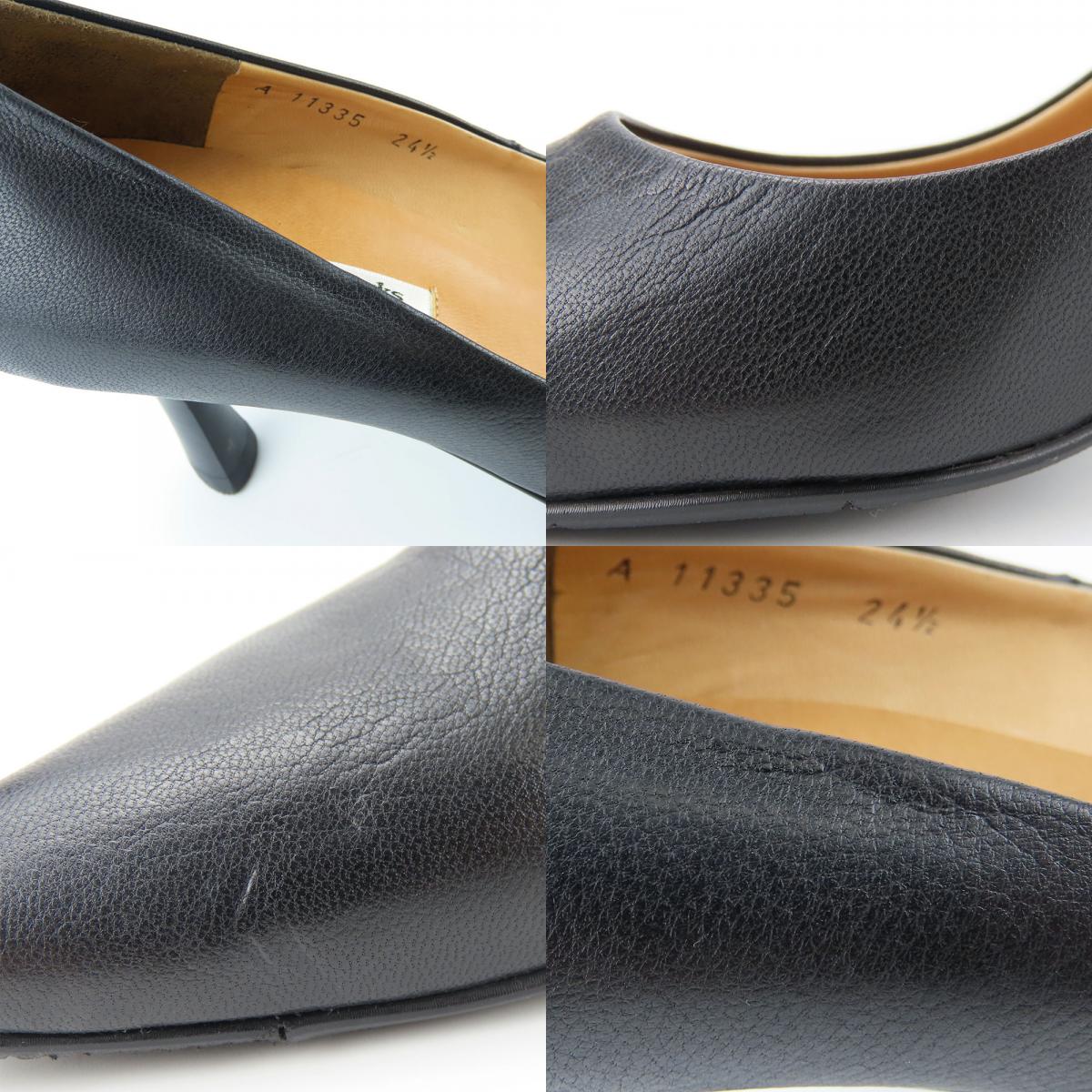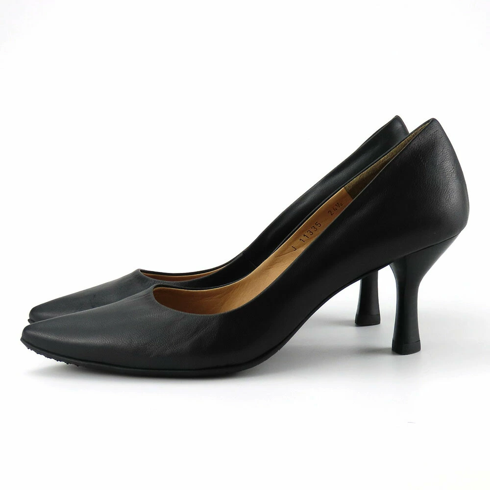 Pre-owned RABOKIGOSHI Works Pumps, Size 24.5cm, Black Leather, AQUA GRIPPER, Women's, JP Size 24.5cm.