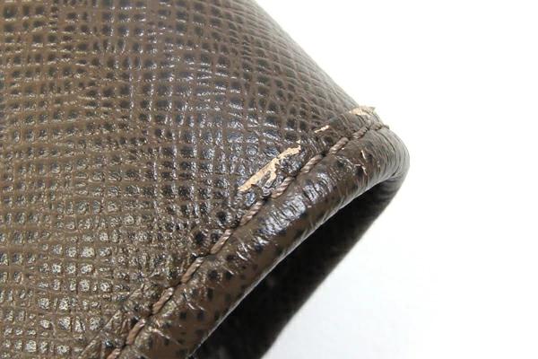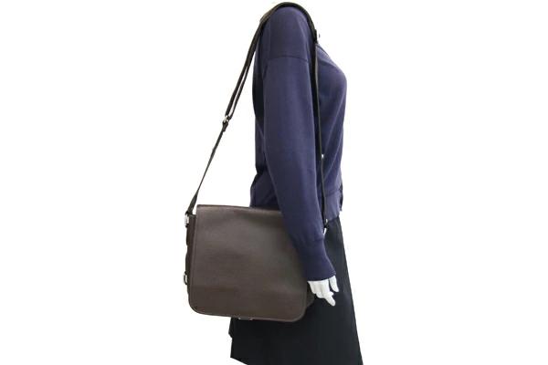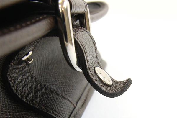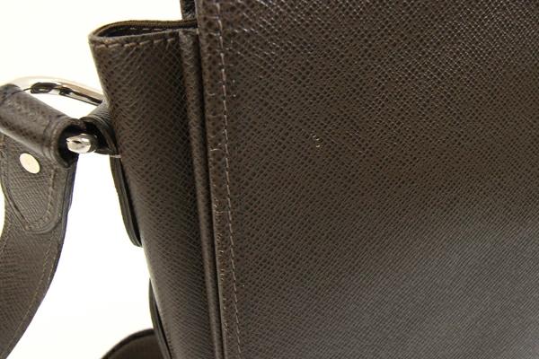| 状態 | 外側:型崩れあり。背面上部に開閉シワあり。所々小キズ・スレ、角やフチ周りにスレキズ・色落ちあり。ショルダーにも薄汚れ・色褪せ・若干毛羽立ちあり。 内側:薄スレ汚れ・色褪せ感あり。 金具:小キズ、スレあり。 |
