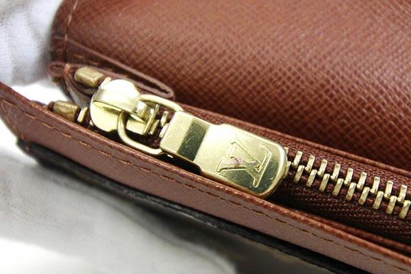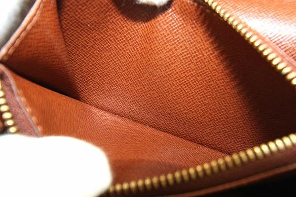 | 状態 | 外側:角、フチ周りに薄スレあり。モノグラムに特有のテカリ感あり。 内側:小銭入れに薄汚れあり。 金具:クスミあり。ファスナー金具にピンクの汚れ、一部色落ちあり。 |