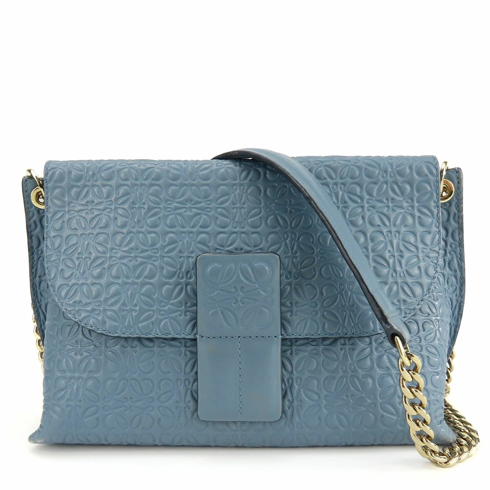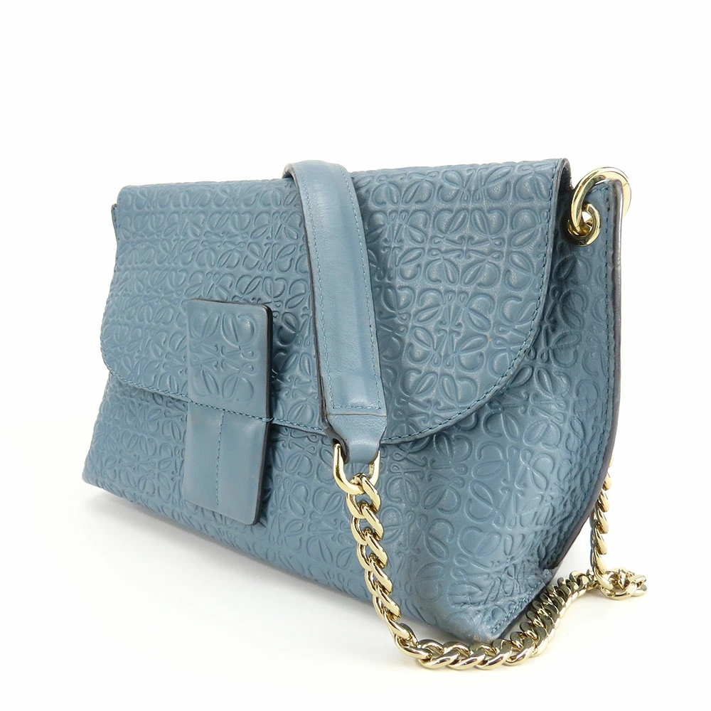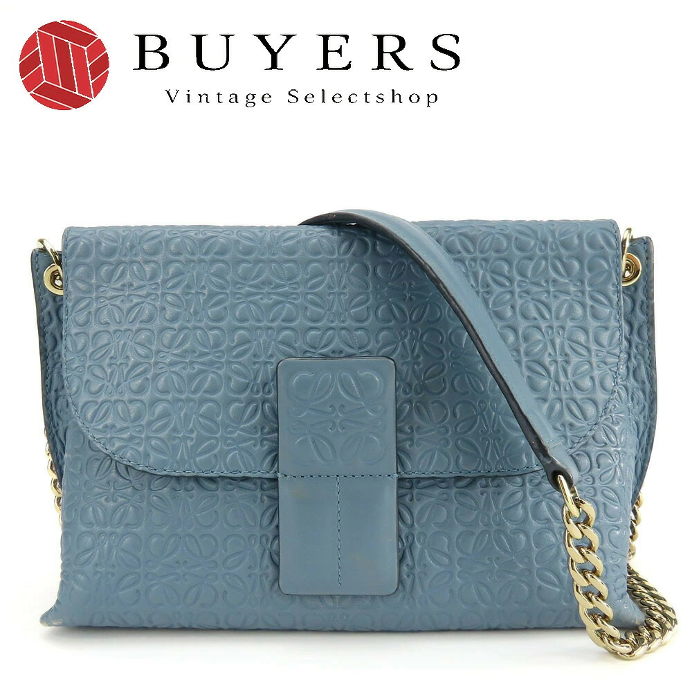 | 品名 | 【中古】 ロエベ ショルダーバッグ アナグラム レザー ブルー ゴールド金具 斜め掛け チェーン レディース 女性 LOEWE |