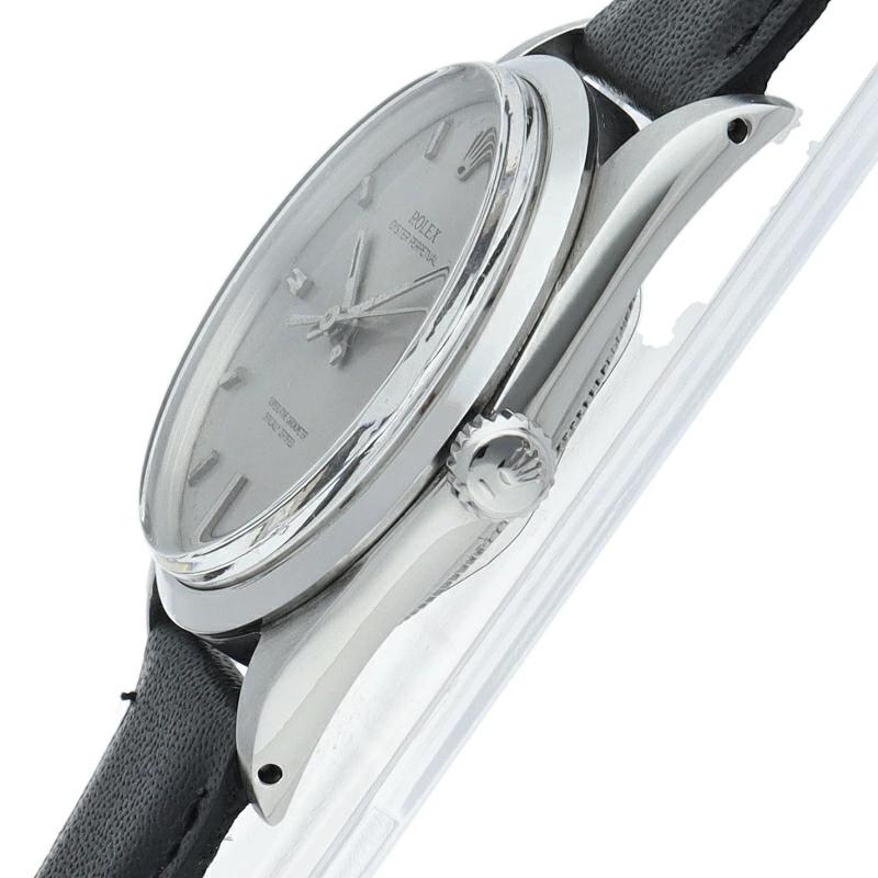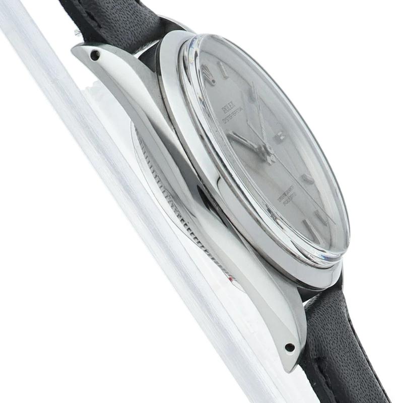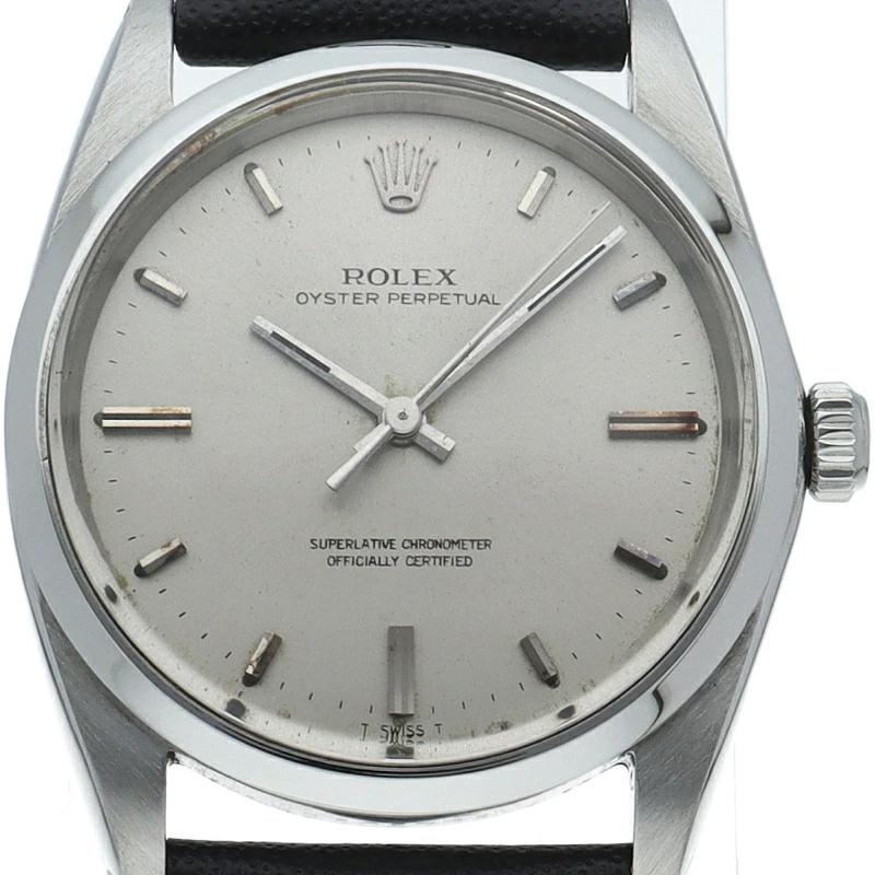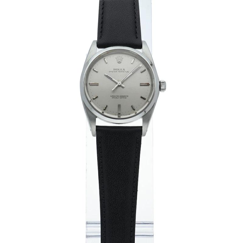| ケースサイズは約36mmとデイトジャストと同程度のサイズ感となりますが、デイトジャストと比べると文字盤のサイズが大きく、一味違った印象の商品となります。36mmサイズのロレックスのアンティークでデイト無しの個体というのは非常に珍しいので、ノンデイトでお探しの方にはオススメな逸品です。 |