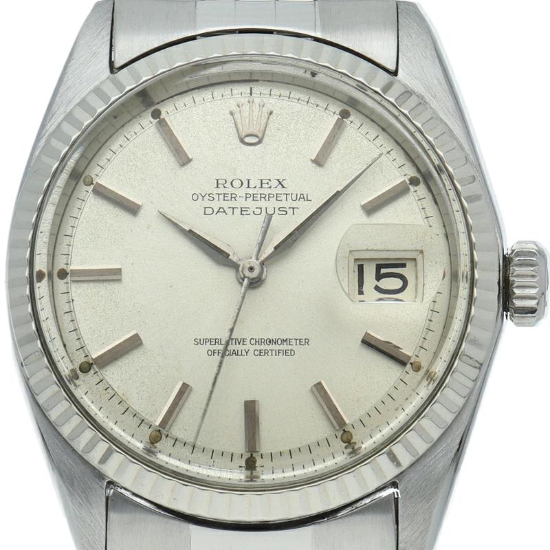 ロレックスのドレスウォッチの王道「デイトジャスト」。ホワイトゴールドとステンレスの組み合わせが高級感を感じさせる1本です。プラスチック風防仕様。